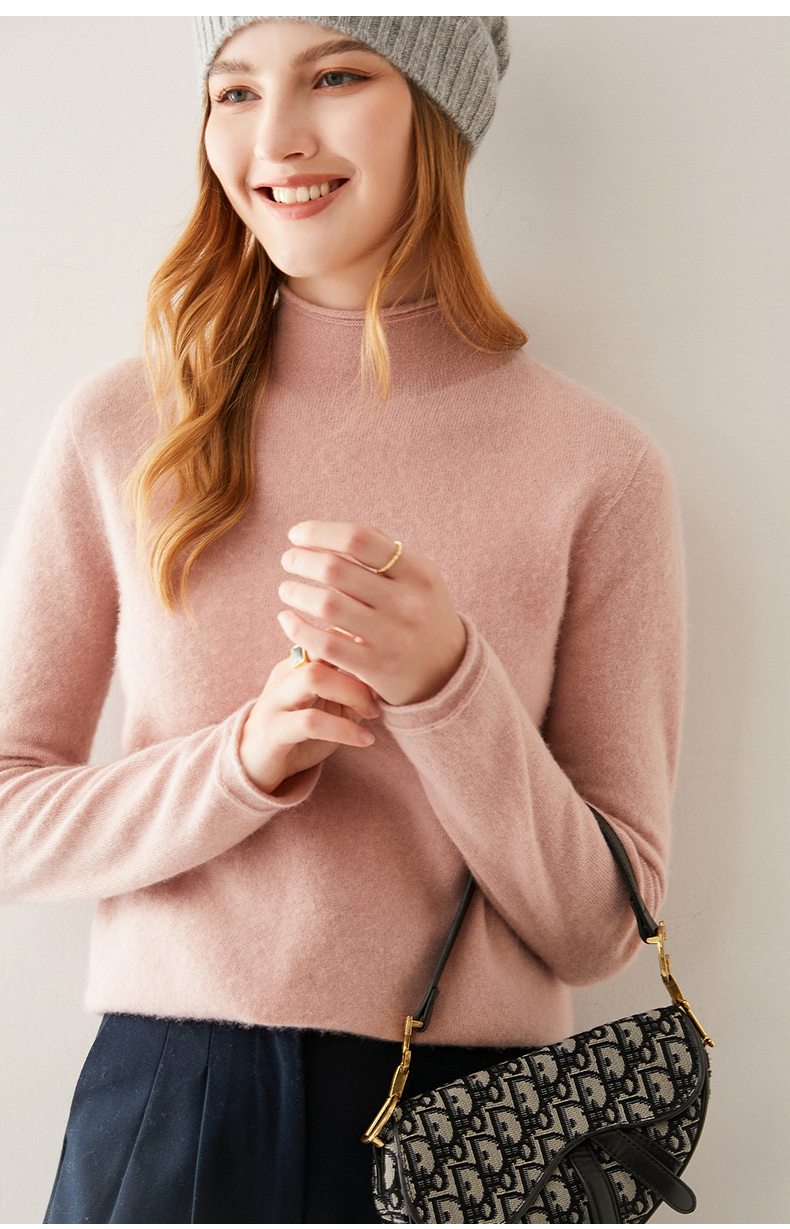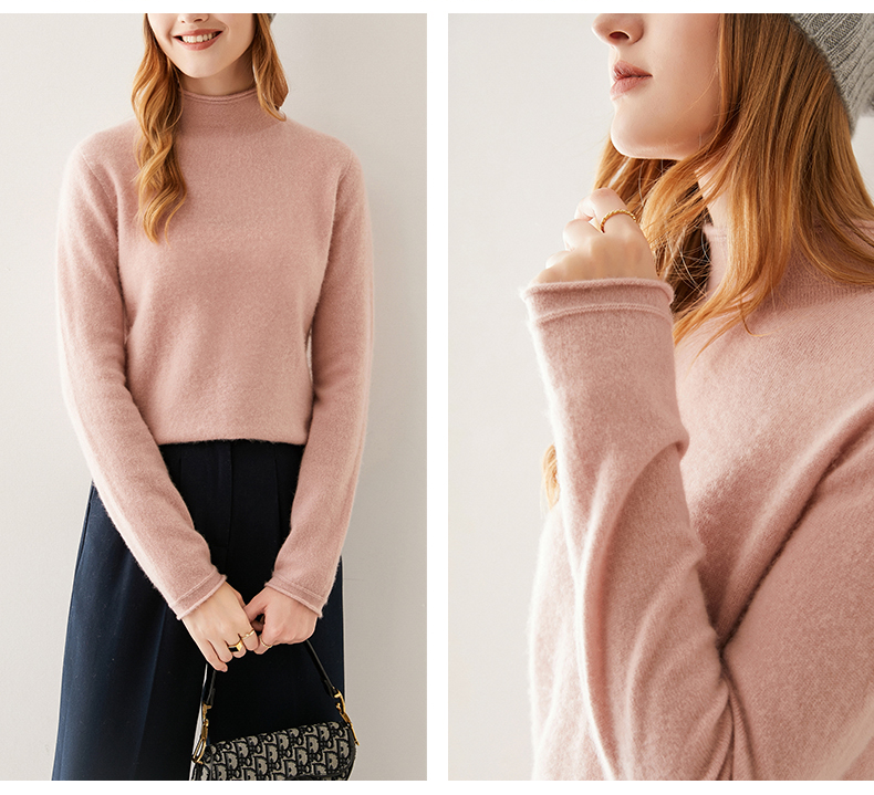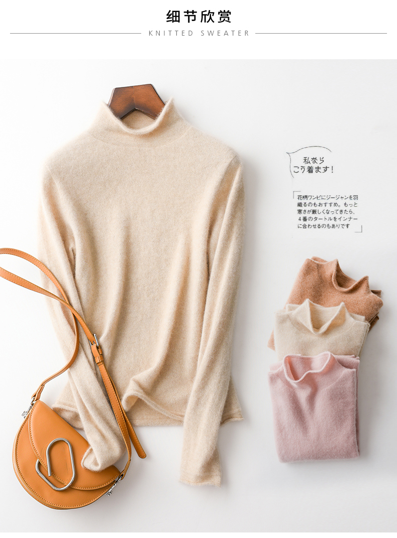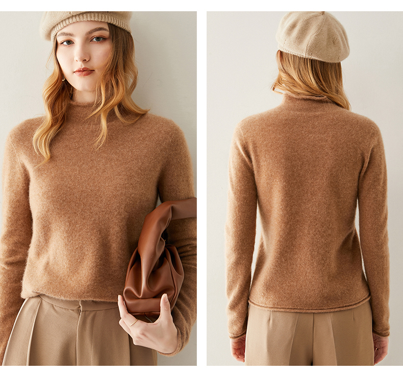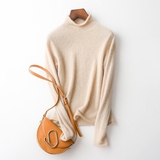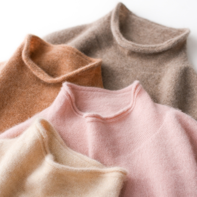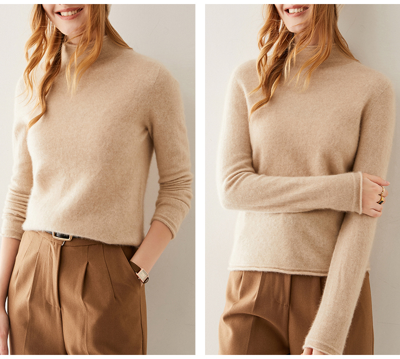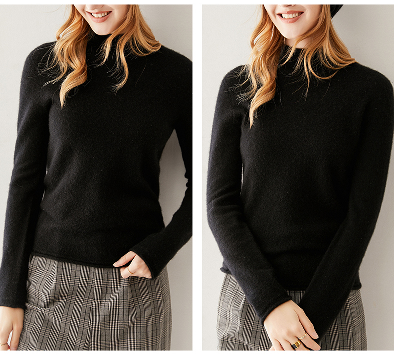 Кашемировый трикотажный свитер, утепленный лонгслив, облегающий крой, высокий воротник
