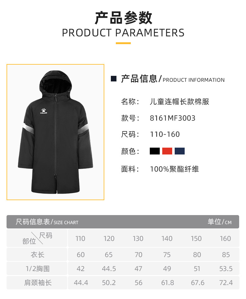 Длинный демисезонный футбольный пуховик с капюшоном, детское пальто для тренировок