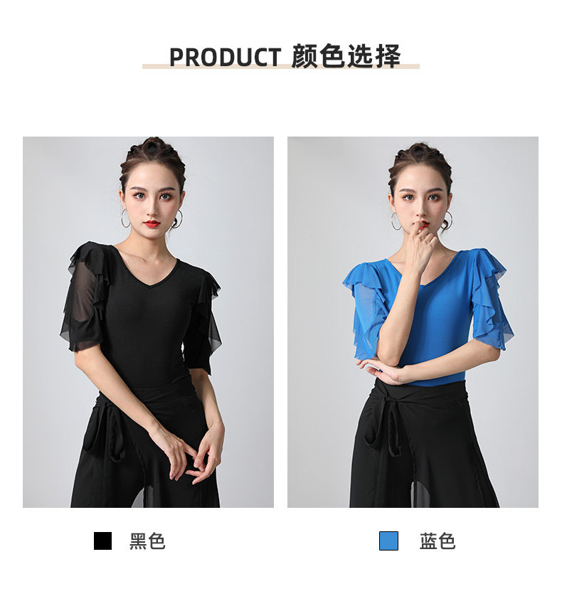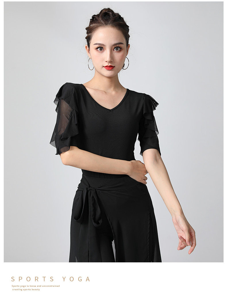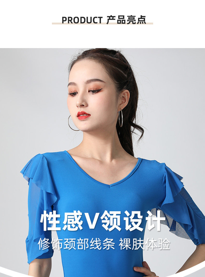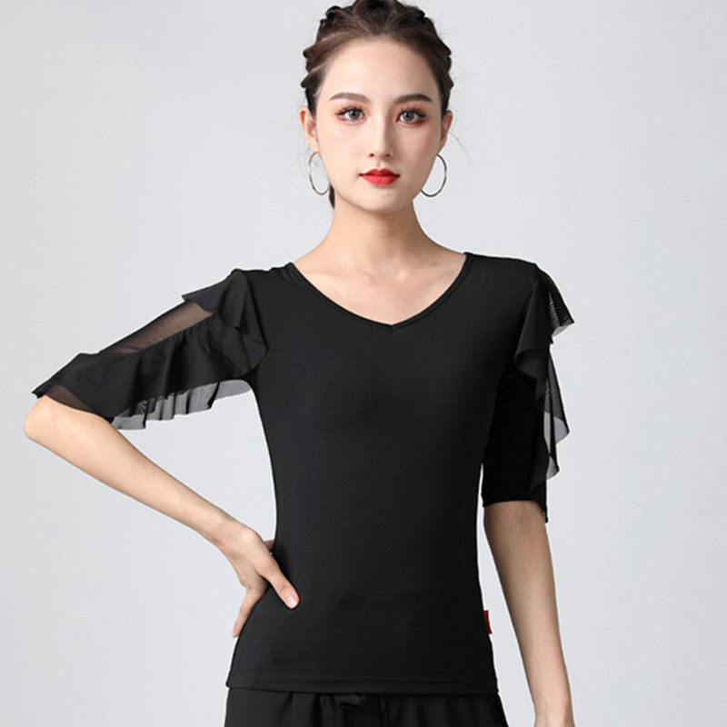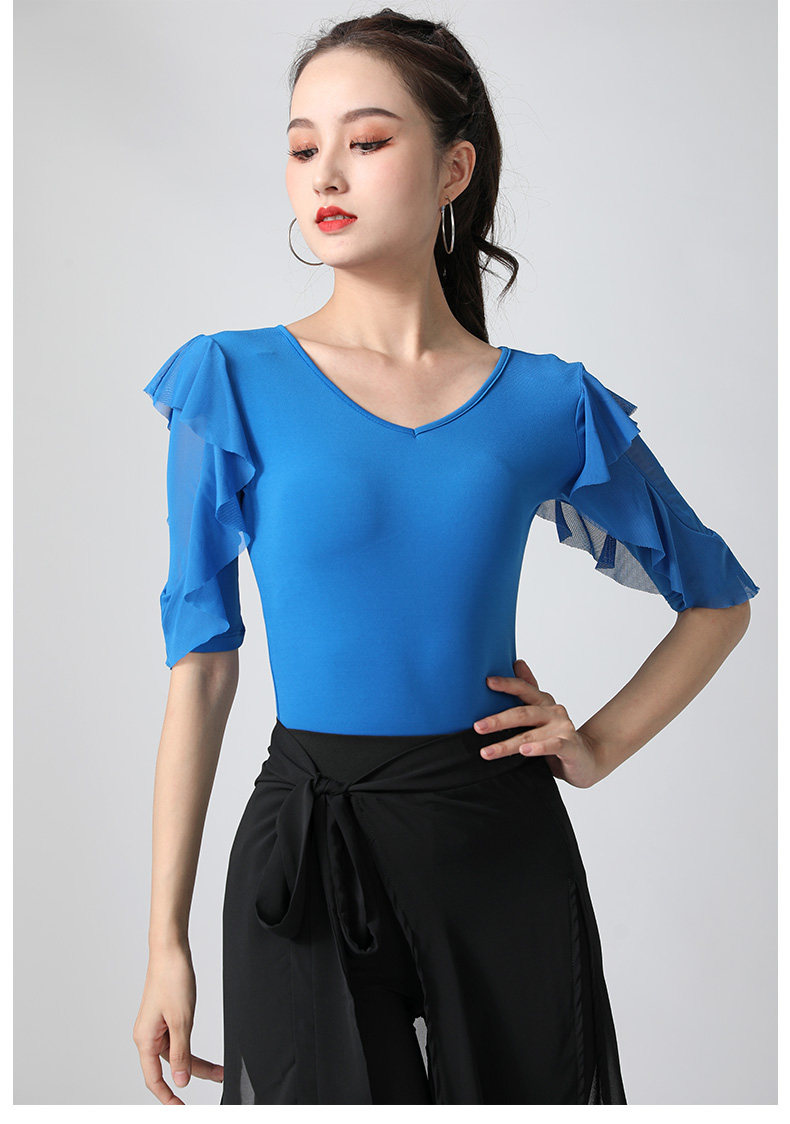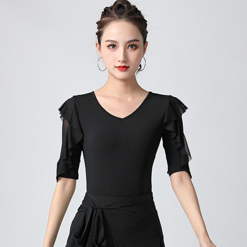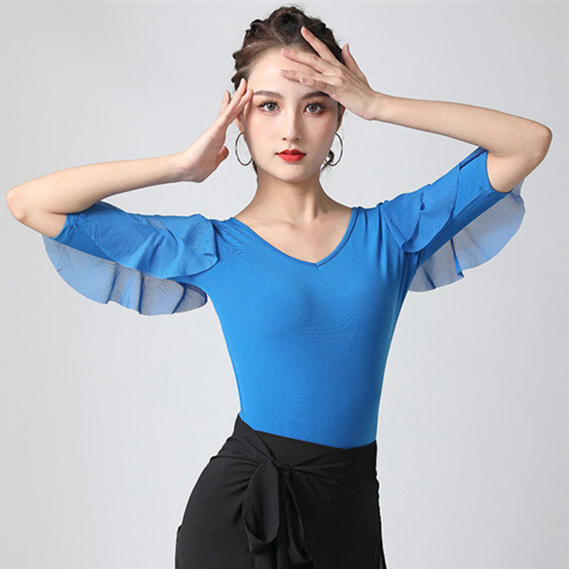 Современный танцевальный топ v -neck Новый женский лотос лист в среднем рукавах национальный стандартный танцевальный сервис модный короткий короткий
