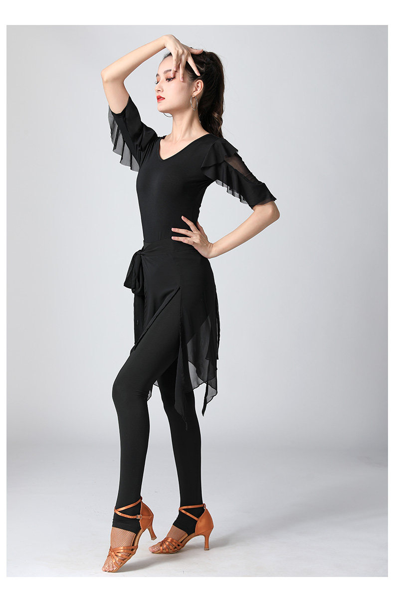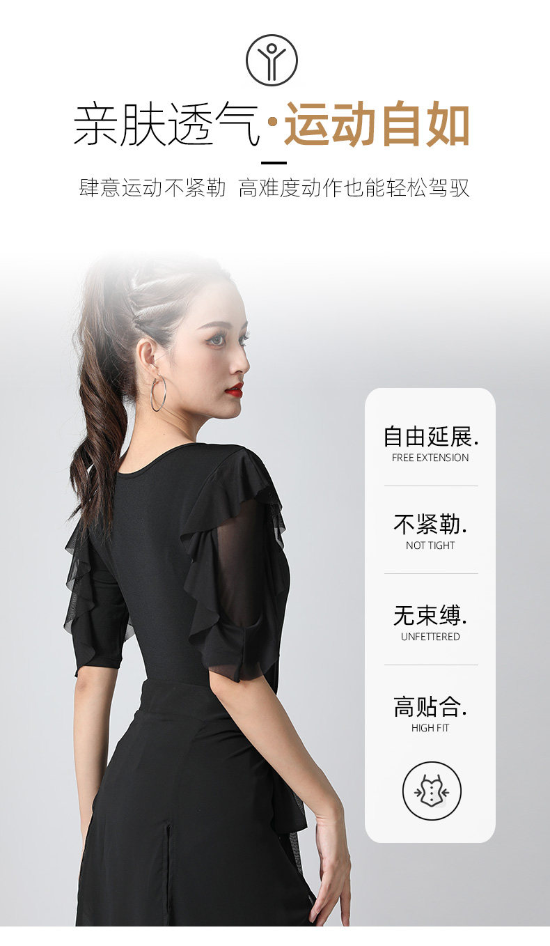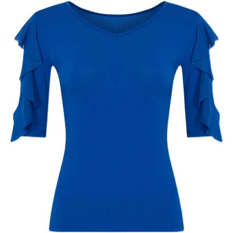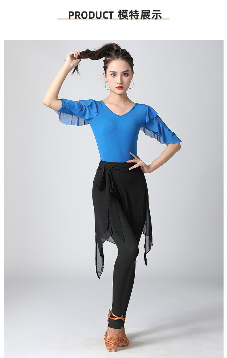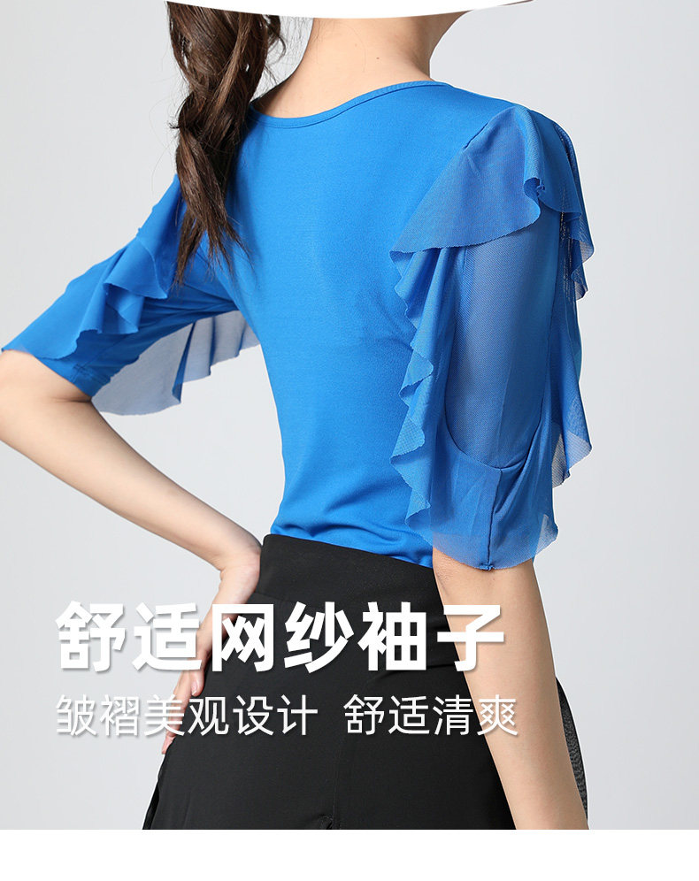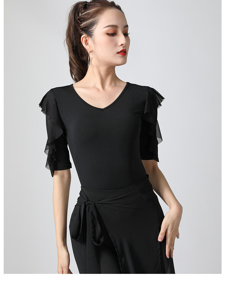 Современный танцевальный топ v -neck Новый женский лотос лист в среднем рукавах национальный стандартный танцевальный сервис модный короткий короткий