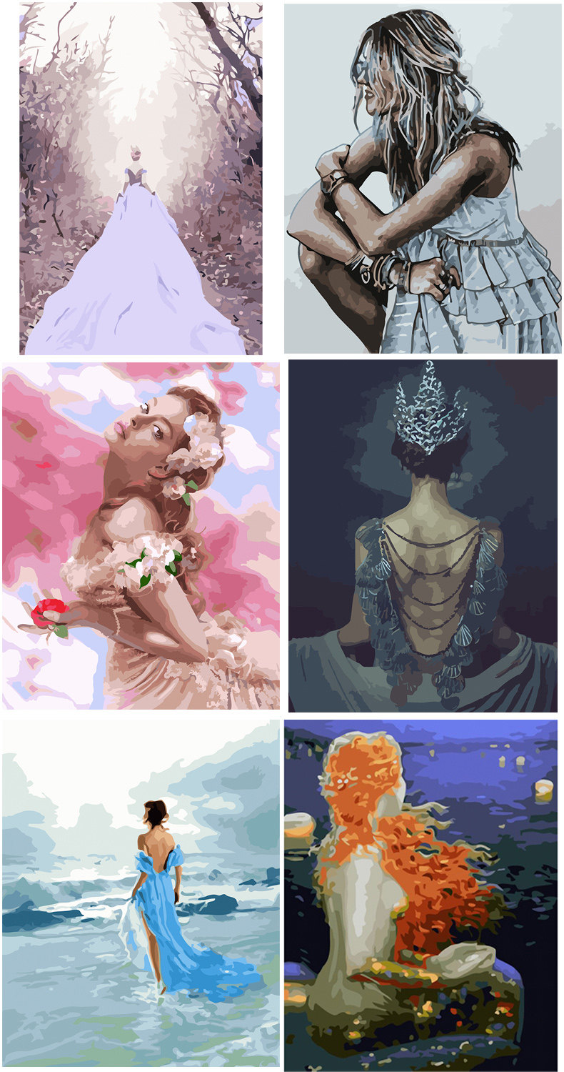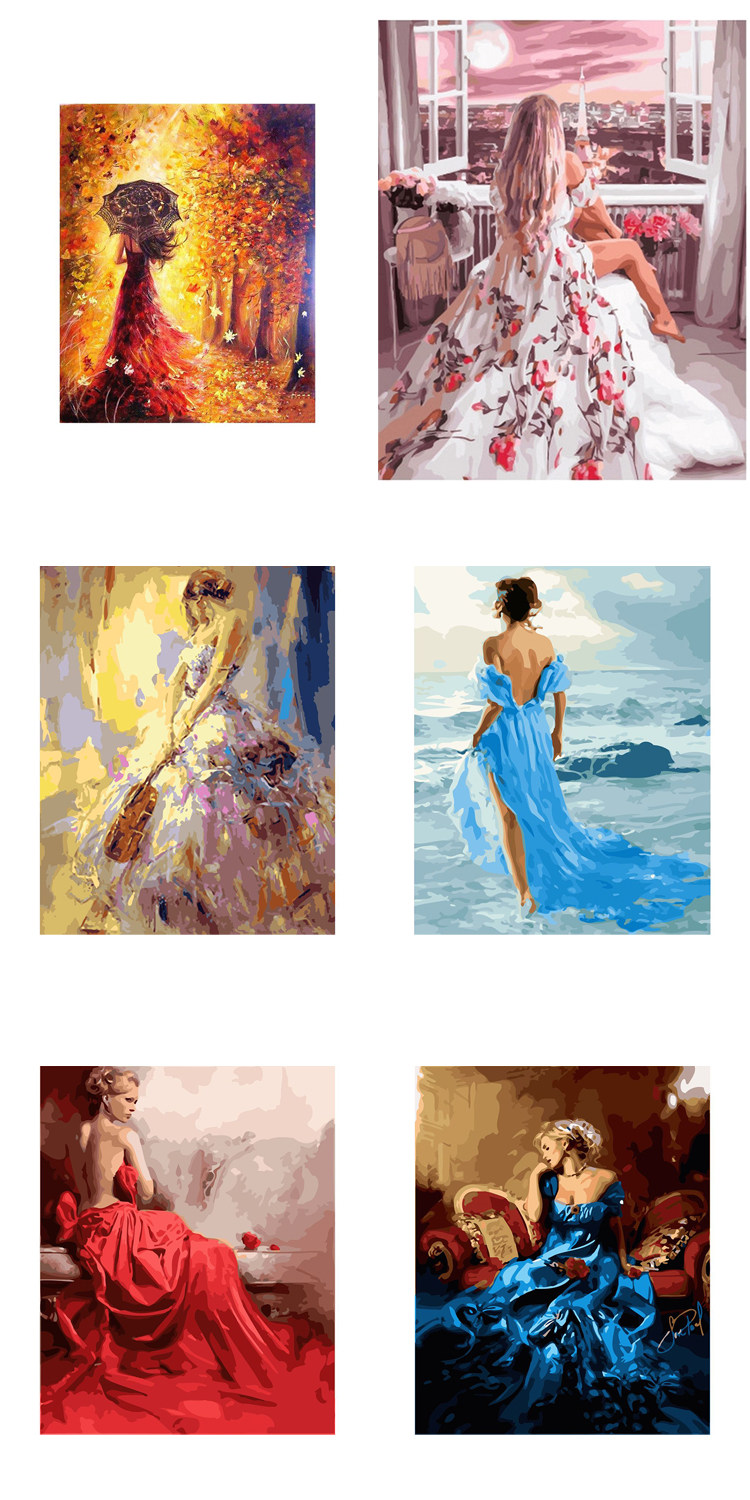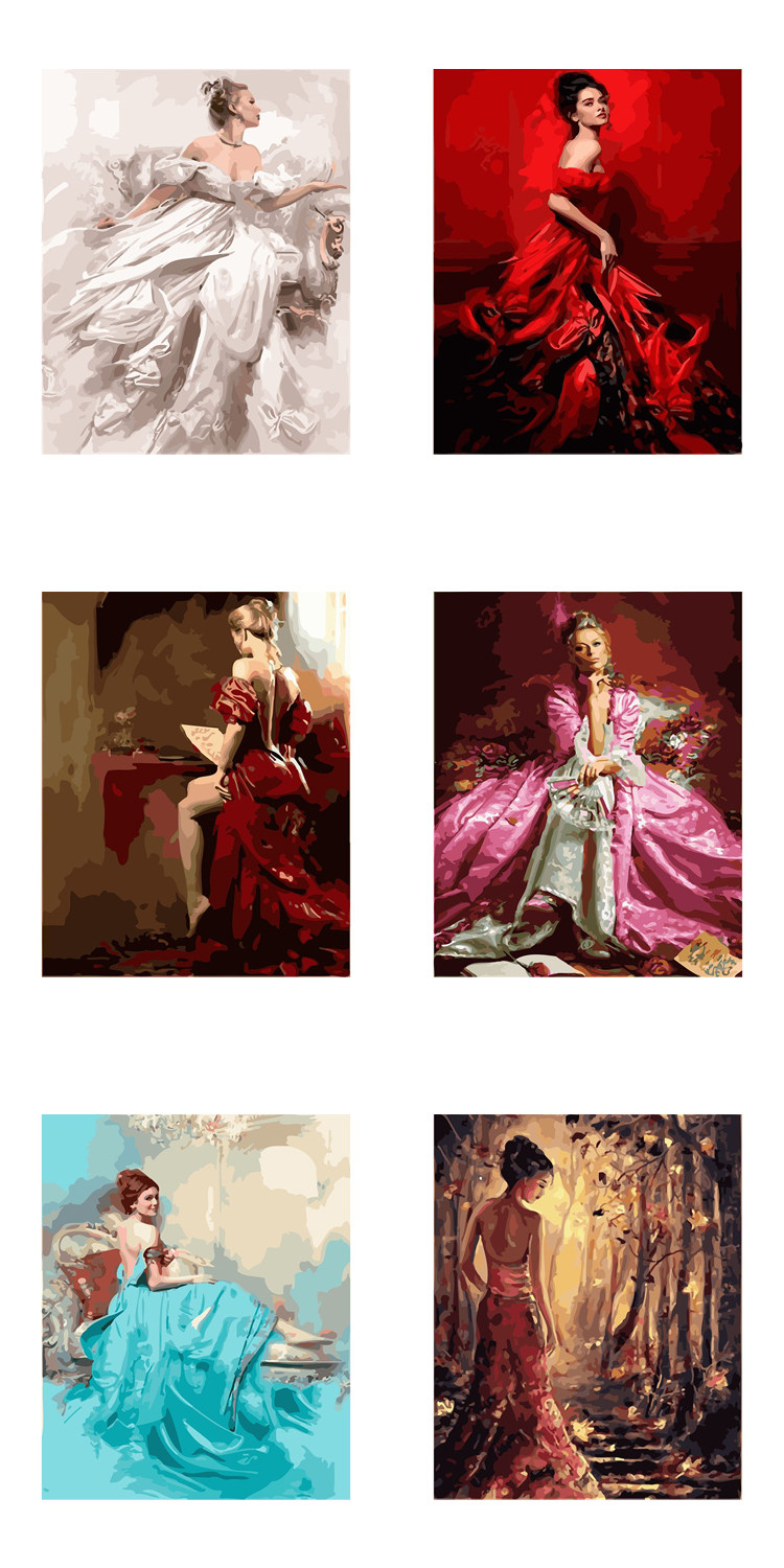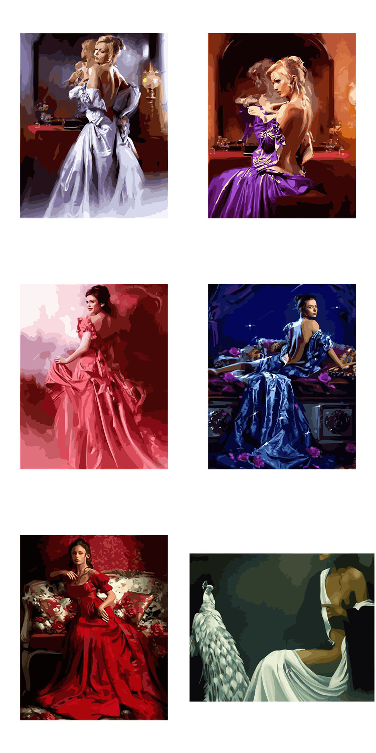 [DIY数字油画自己填色材料包穿婚纱礼服的女生回眸一笑家居装饰画]