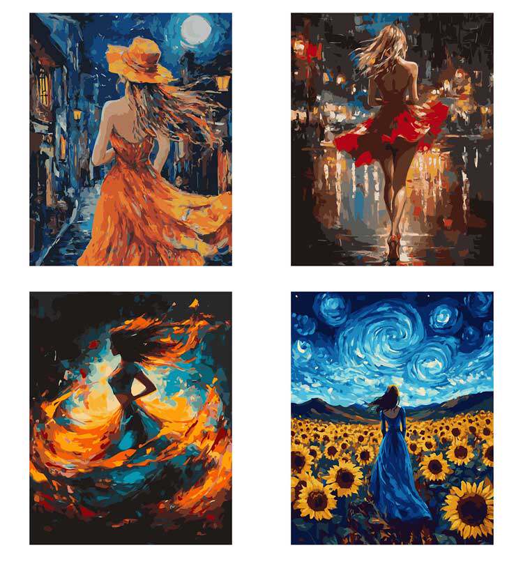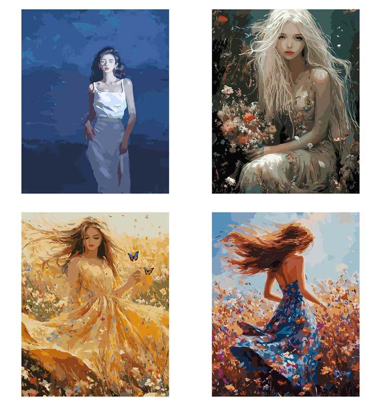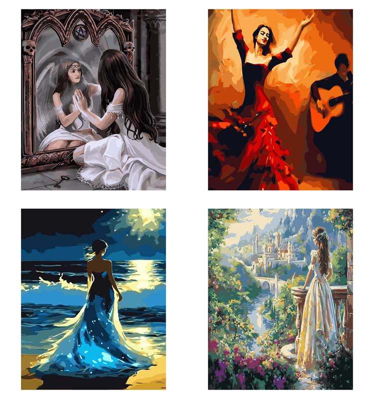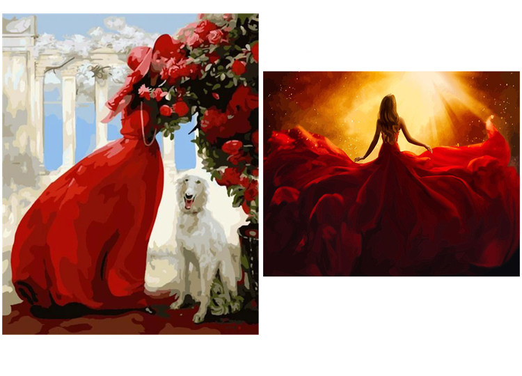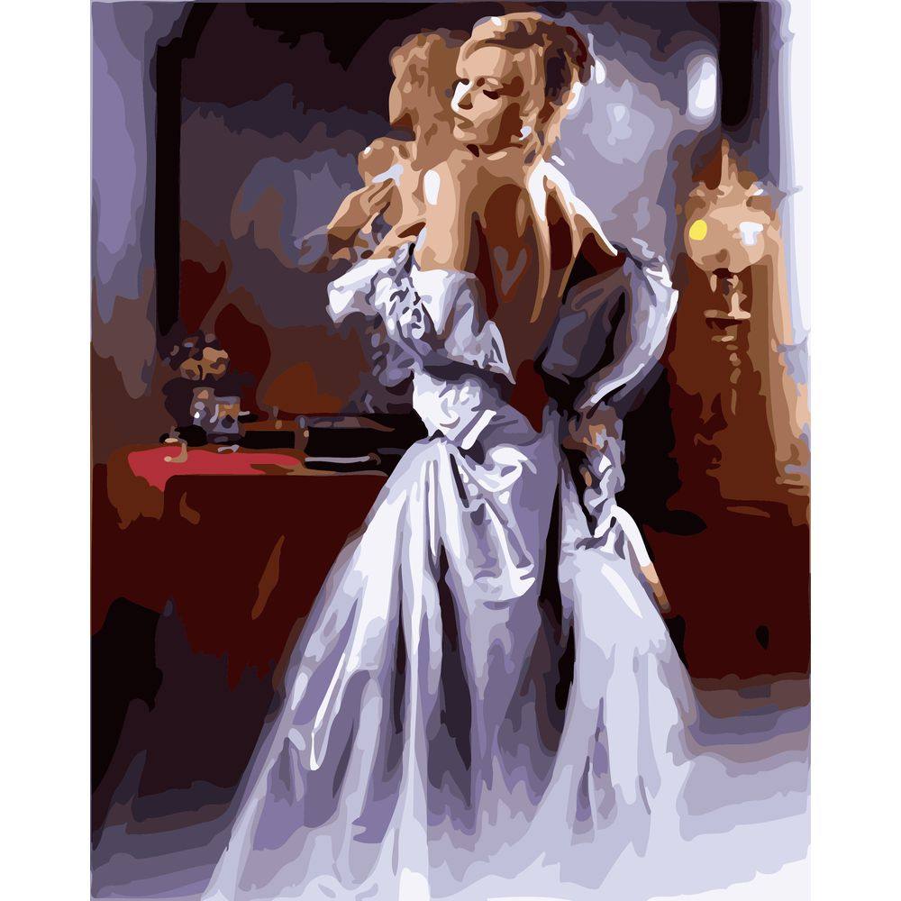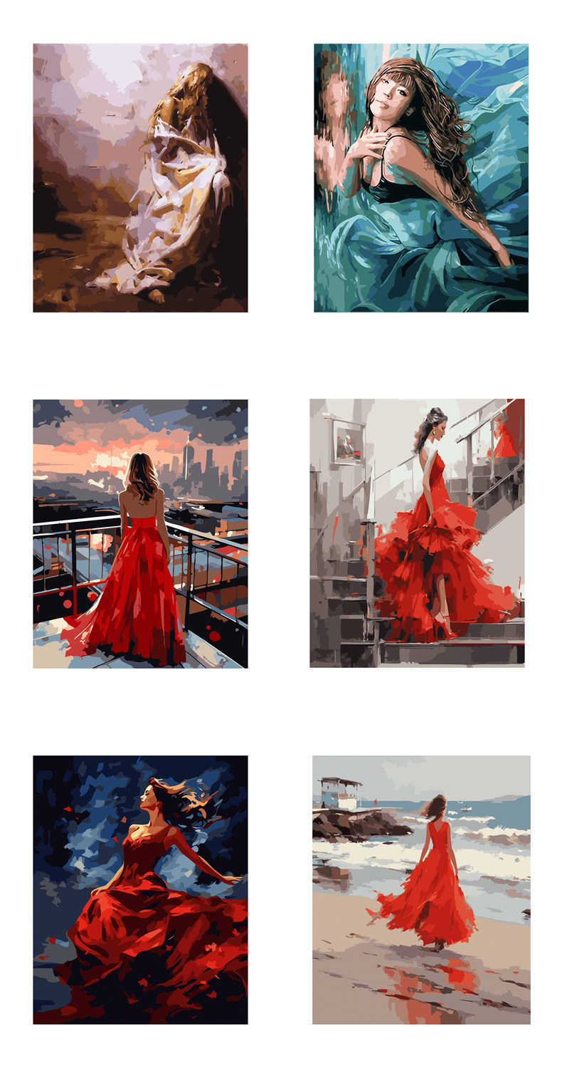 [DIY数字油画自己填色材料包穿婚纱礼服的女生回眸一笑家居装饰画]