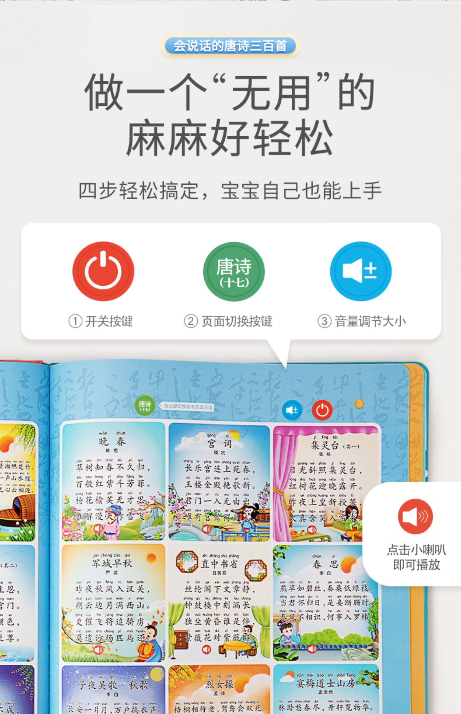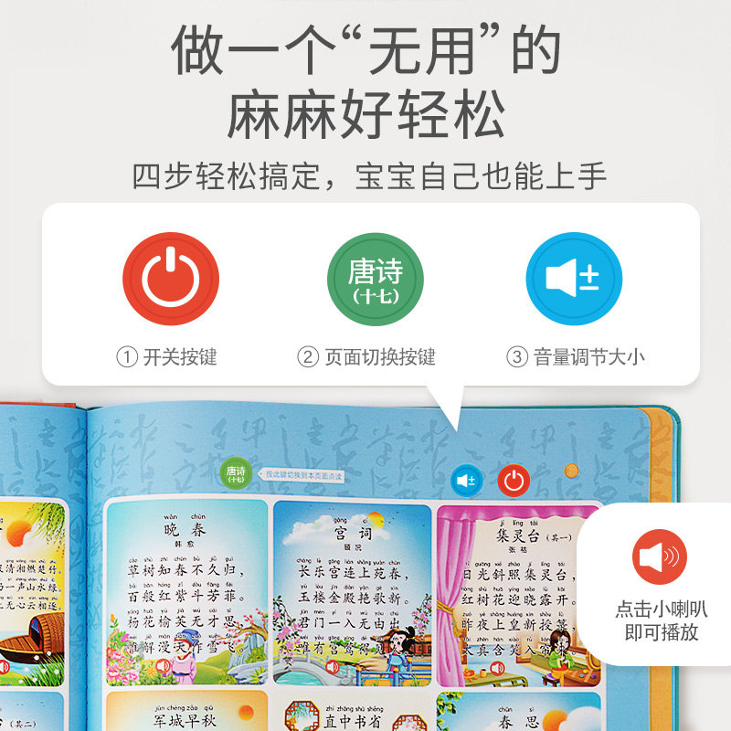 Детская говорящая машина раннего образования, Танская поэзия, обучающая читающая машина, аудио книга, древняя поэзия, со звуком, издает звуки