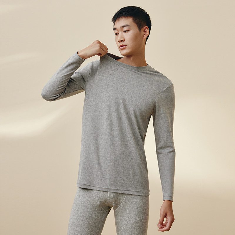 Термобелье, хлопковая утепленный лонгслив с круглым воротником