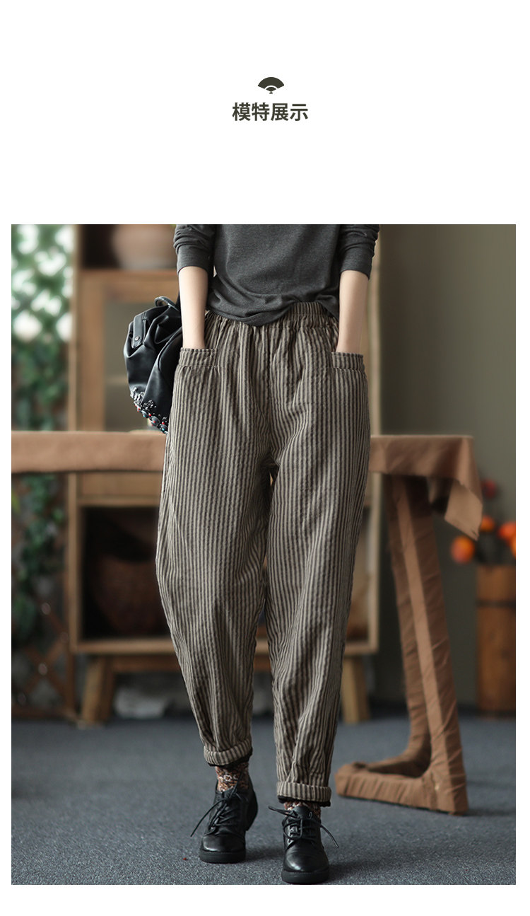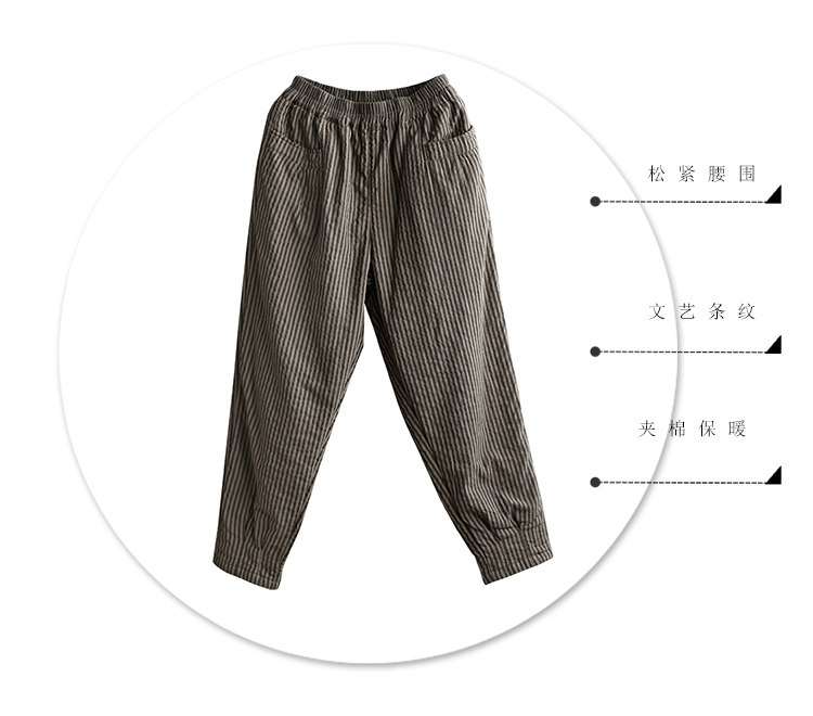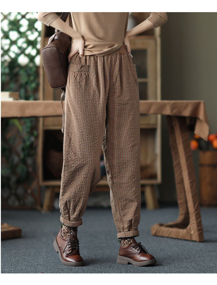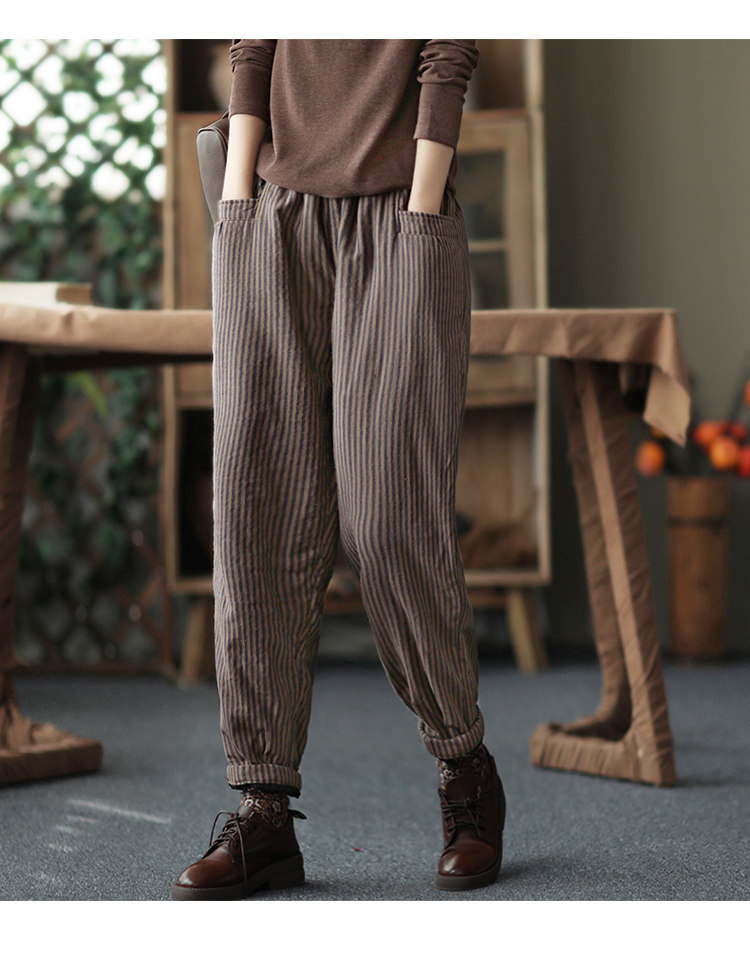 Ретро стеганые зимние удерживающие тепло штаны, из хлопка и льна, увеличенная толщина