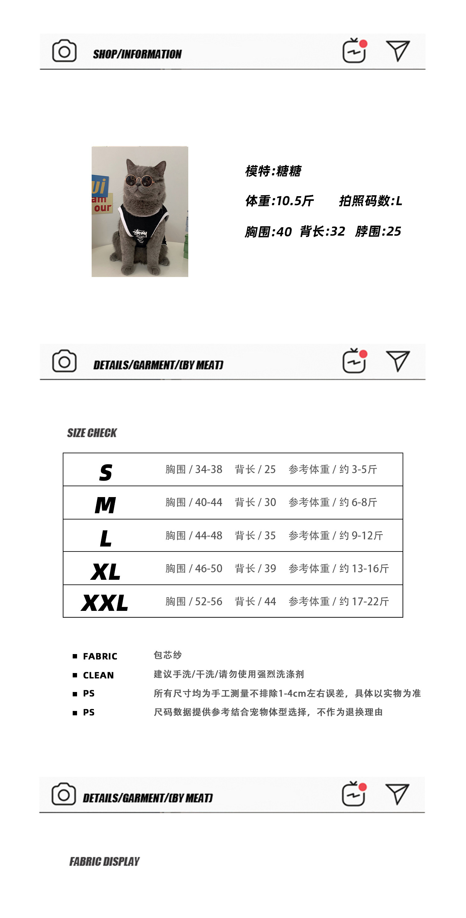| Размер: | XXL (грудь 52-56 назад 44 около 17-22 кот, XL (грудь 46-50 назад 39 около 13-16 кот, S (Breal 34-38 Back 25 около 3-5 Catties), L (Лучший 44-48 назад 35 около 9-12 кот, М (грудь 40-44 назад 30 около 5-8 кот) |