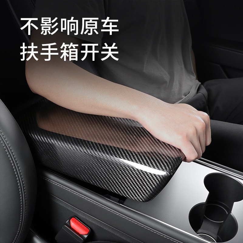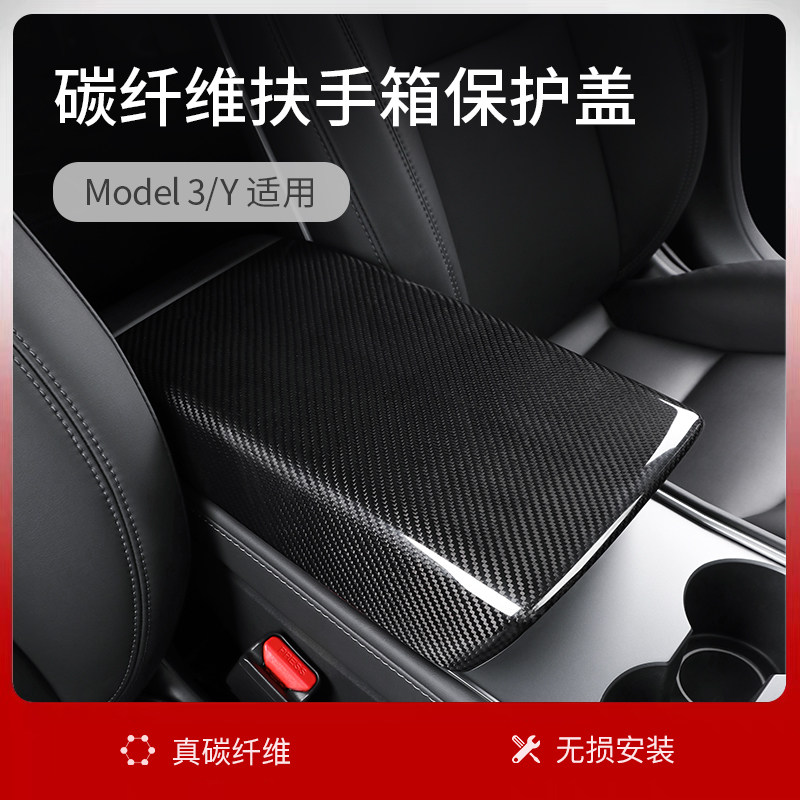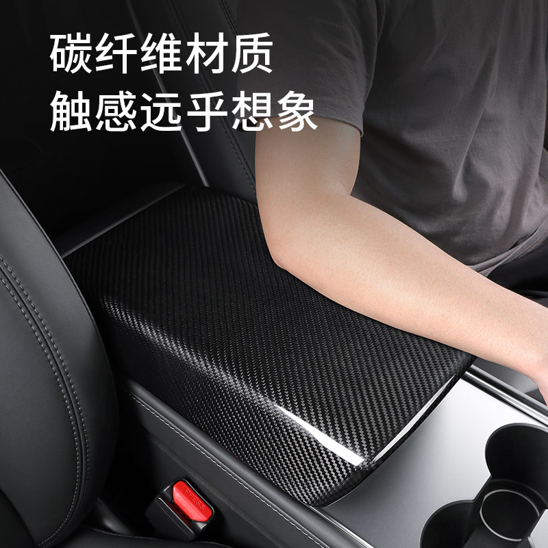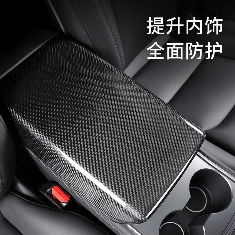 Подходит для Tesla Tesla Model3 Реальное углеродное волокно модели модели модификации подлокотника защитная крышка