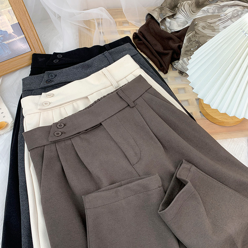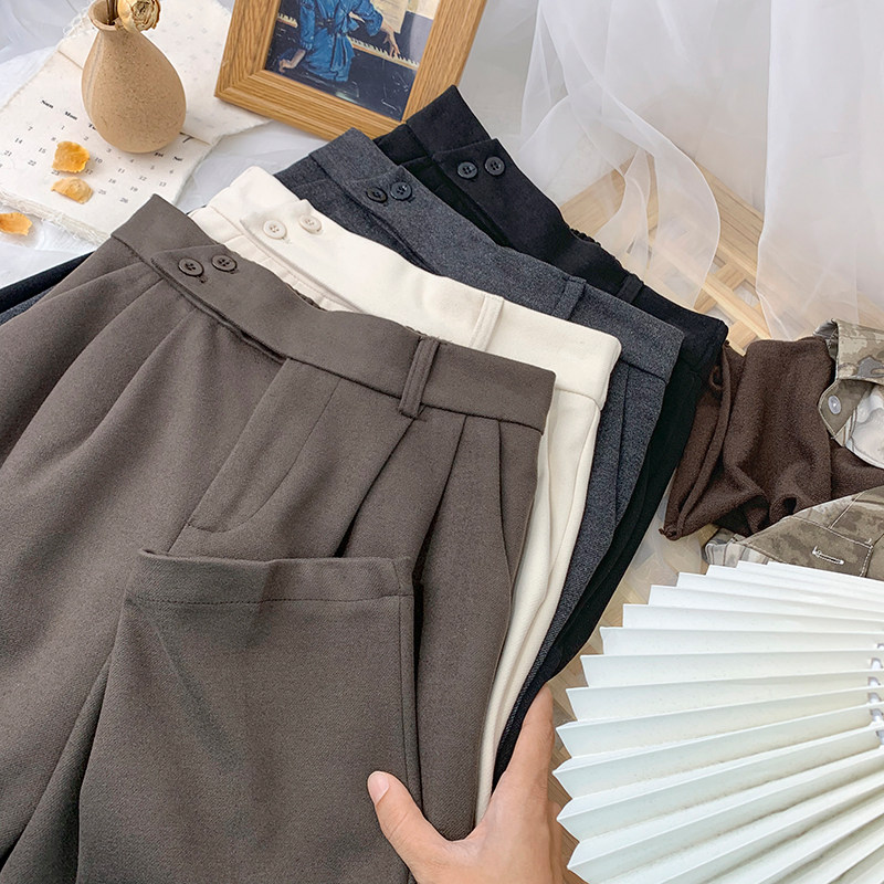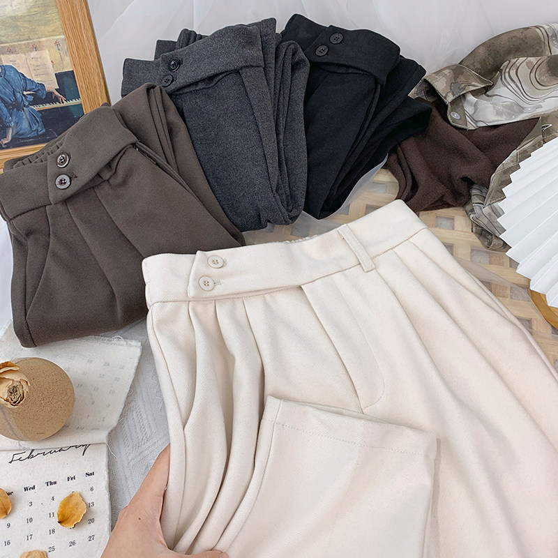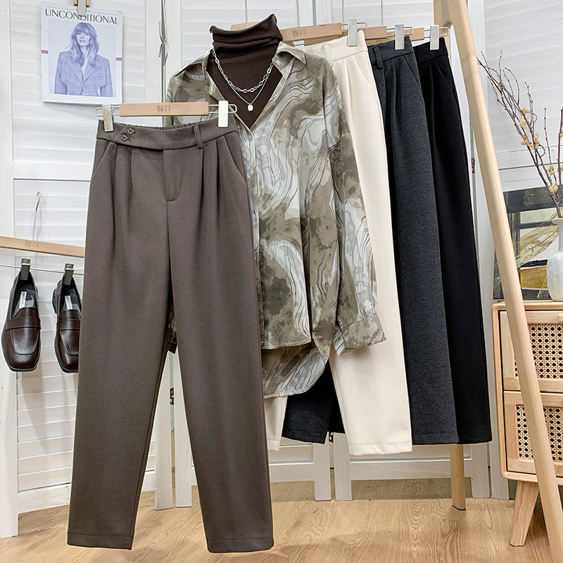 Шерстяной костюм, демисезонные леггинсы, штаны, высокая талия, увеличенная толщина, свободный прямой крой
