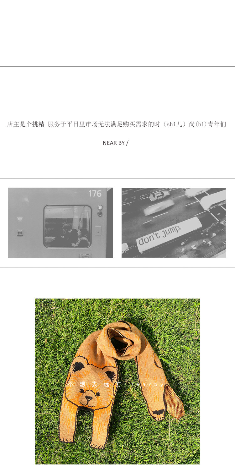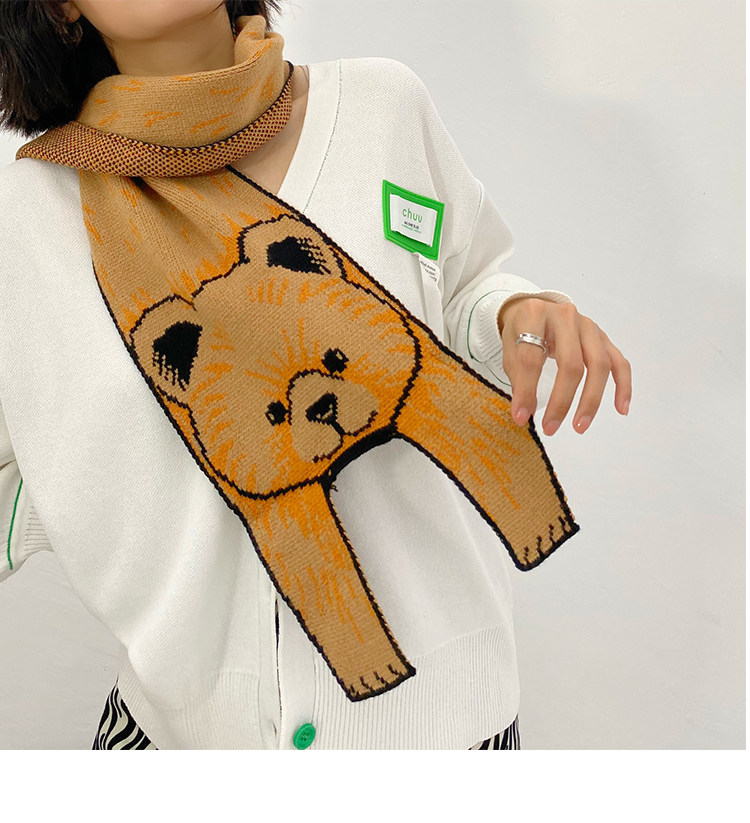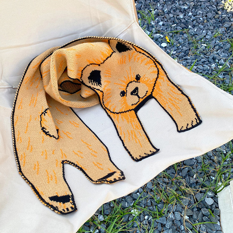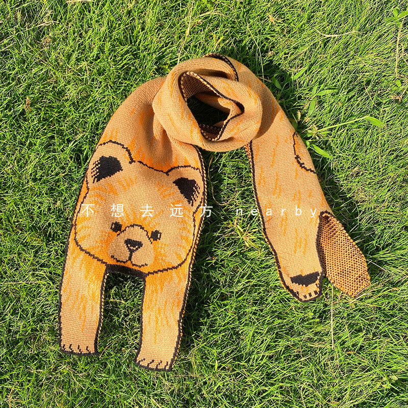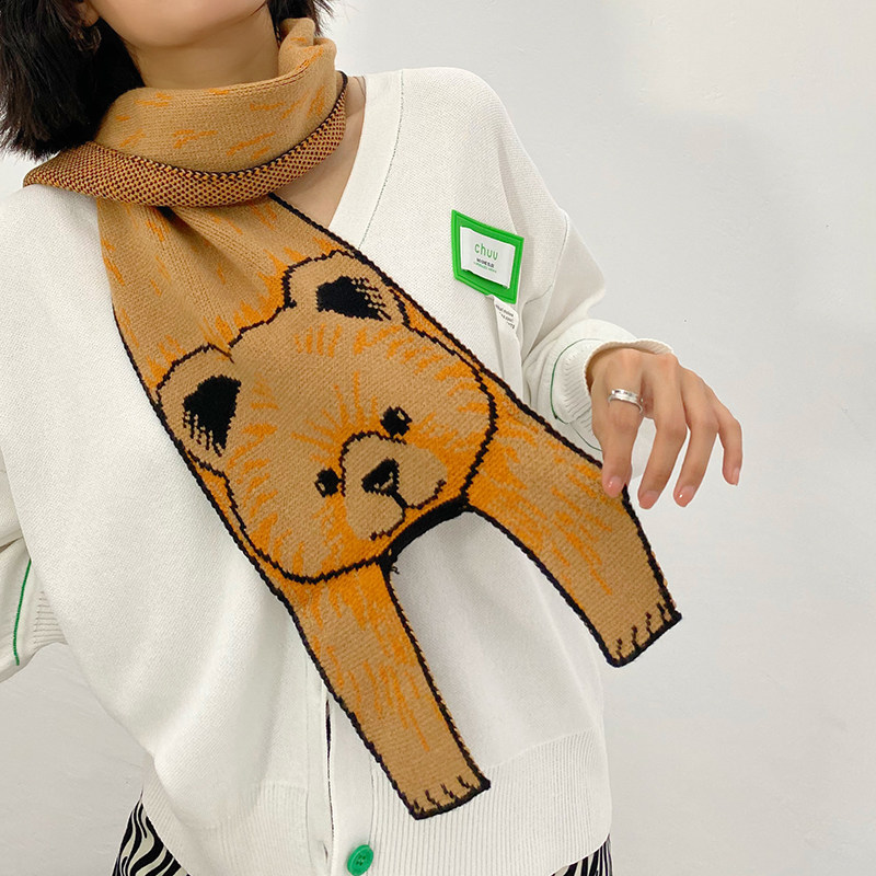 Мультяшный трикотажный японский демисезонный милый шарф для влюбленных, с медвежатами
