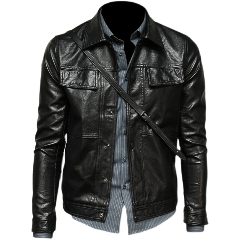 Черная полиуретановая модная куртка, лонгслив для отдыха, облегающий крой