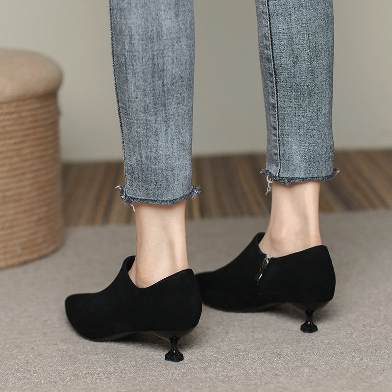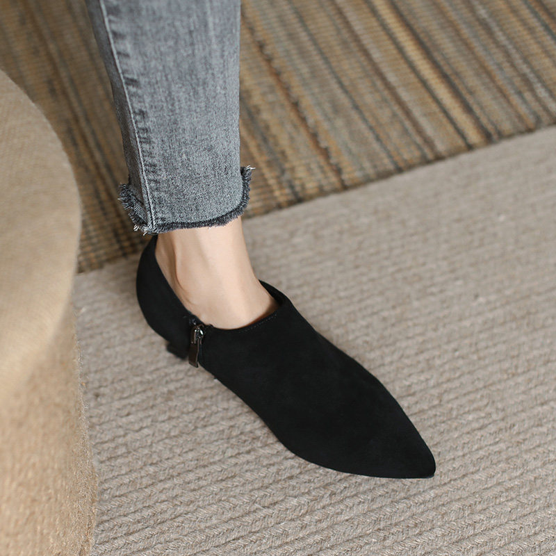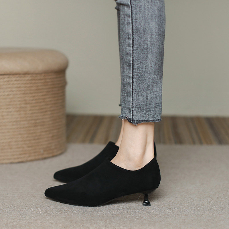 Черные весенние замшевые туфли на высоком каблуке на высоком каблуке, 3см, модель весна/осень 2023 года