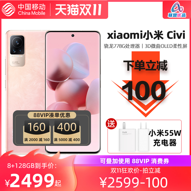 Фаза 12 Процент -Бесплатный урегулирование 100 Зарядное устройство доставки Xiaomi Xiaomi Civi New 5G Смартфон 5G Китайский мобильный официальный флаг тенденции селфи световой двойной двойной экран Qualcomm Snapdragon 778g подлинный