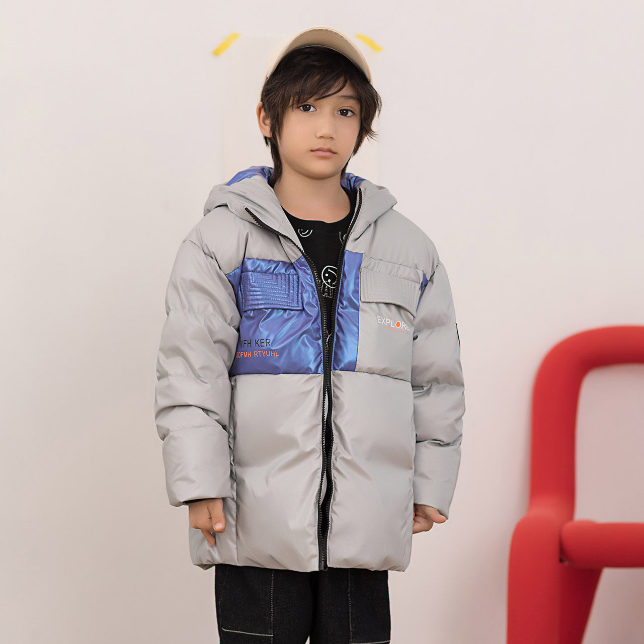 Демисезонный дизайнерский ветрозащитный детский пуховик для отдыха с капюшоном, простой крой