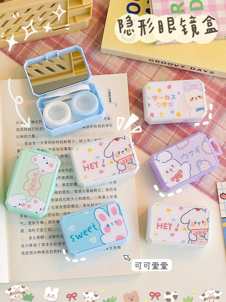 Японские невидимые маленькие очки, милая брендовая портативная двойная коробка, простой и элегантный дизайн