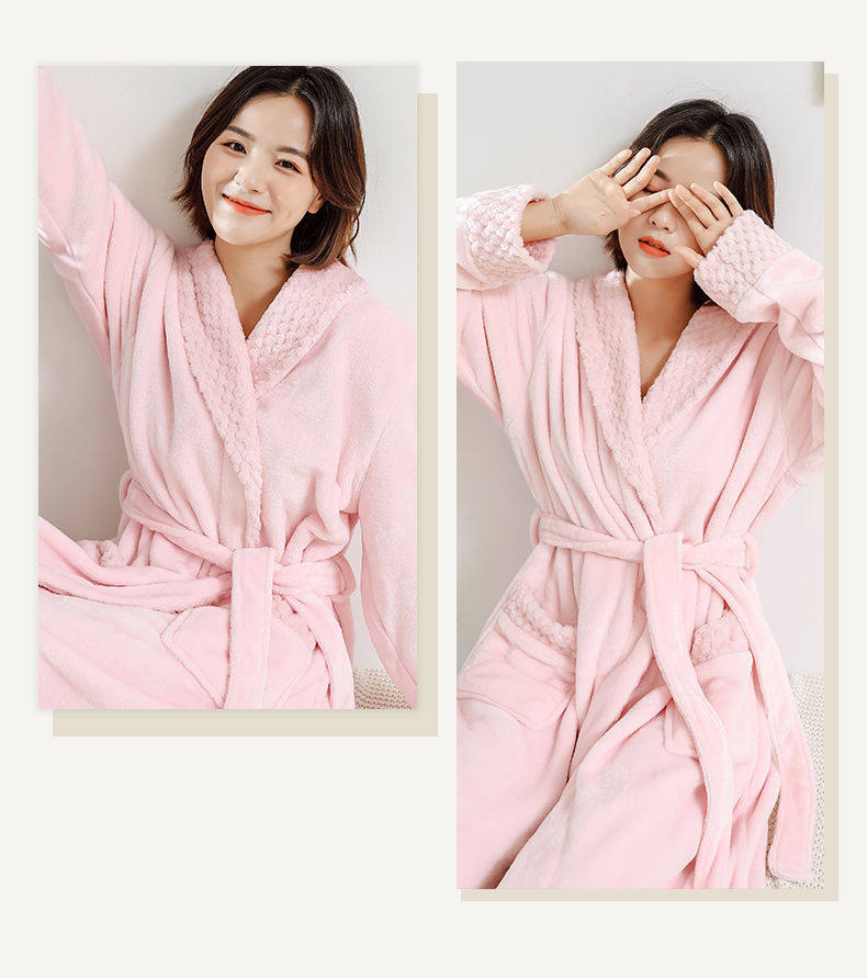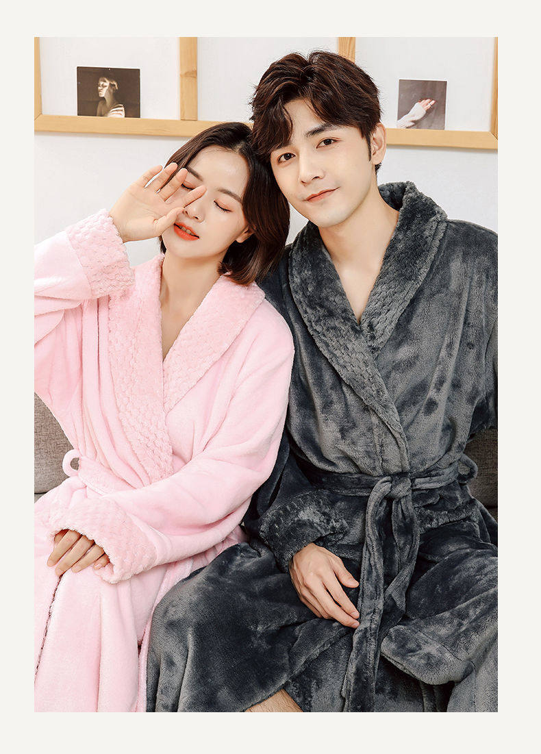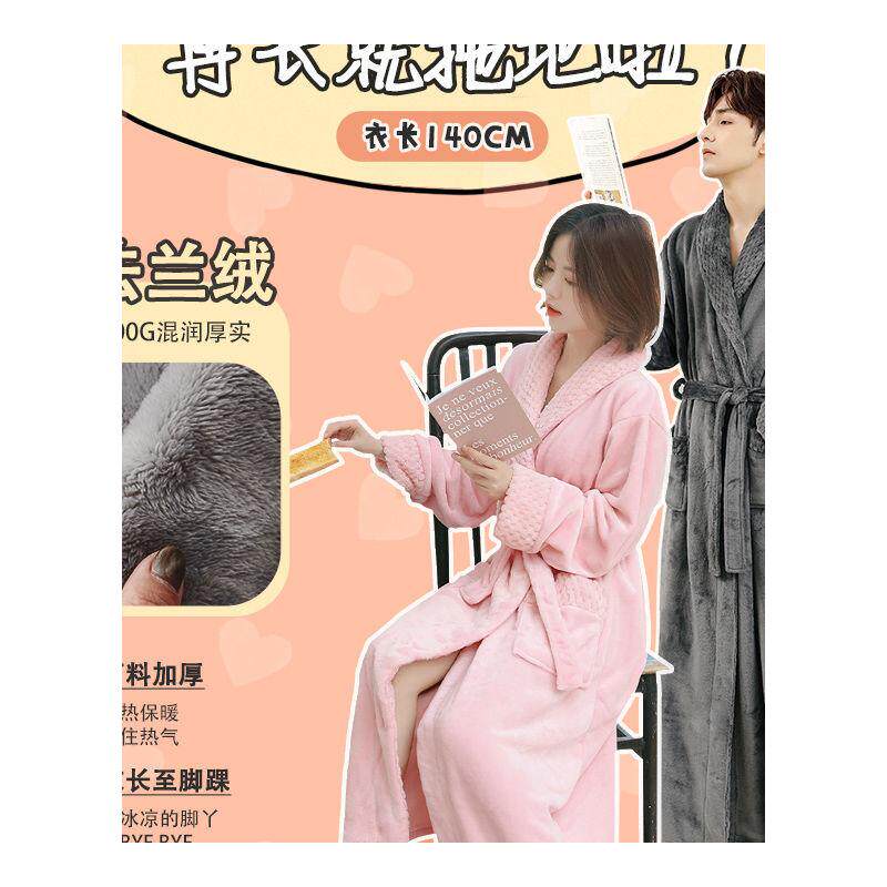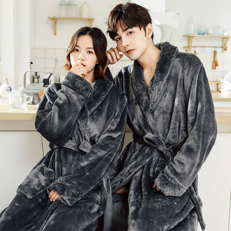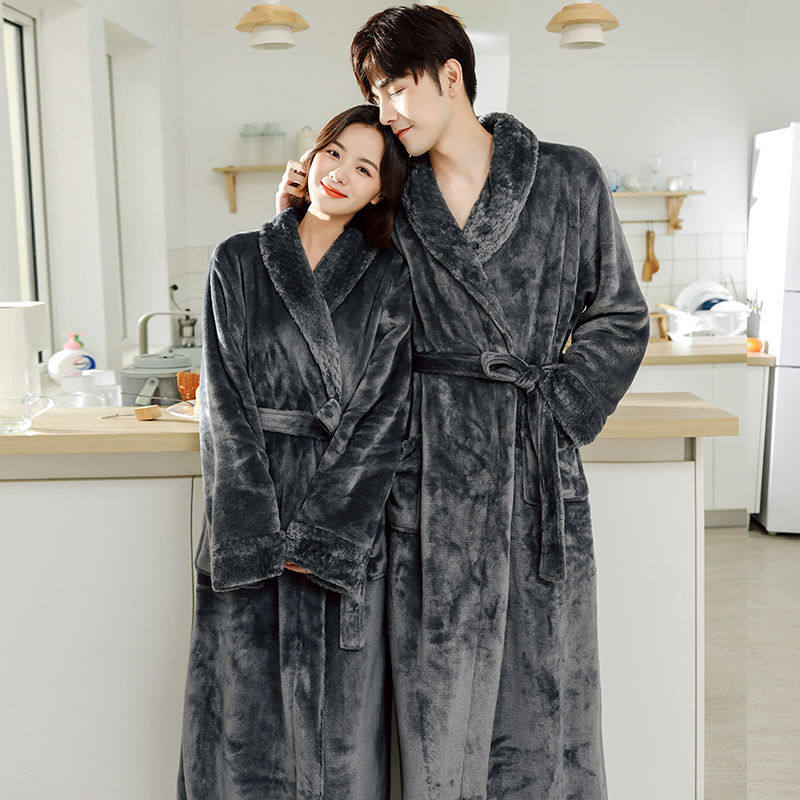 Демисезонный длинный коралловый банный халат, зимняя бархатная утепленная фланелевая пижама для влюбленных