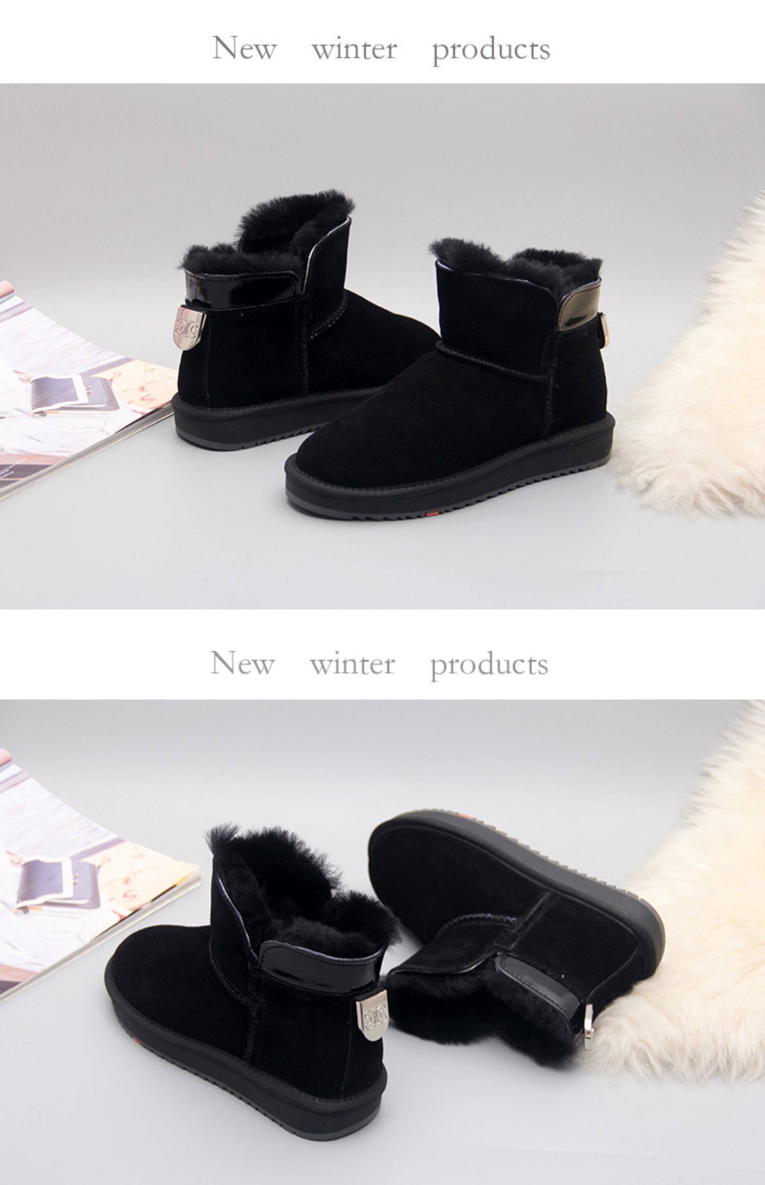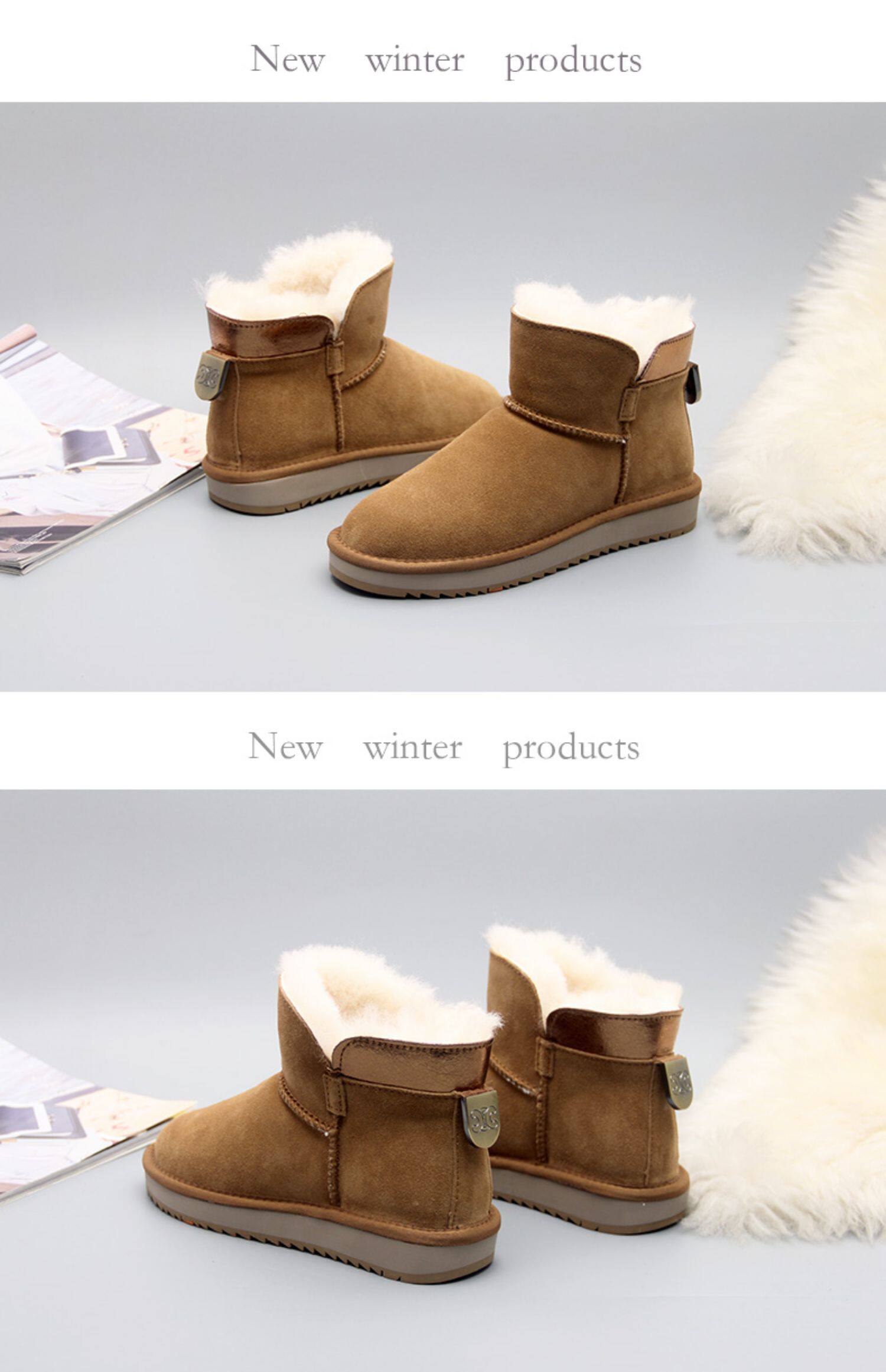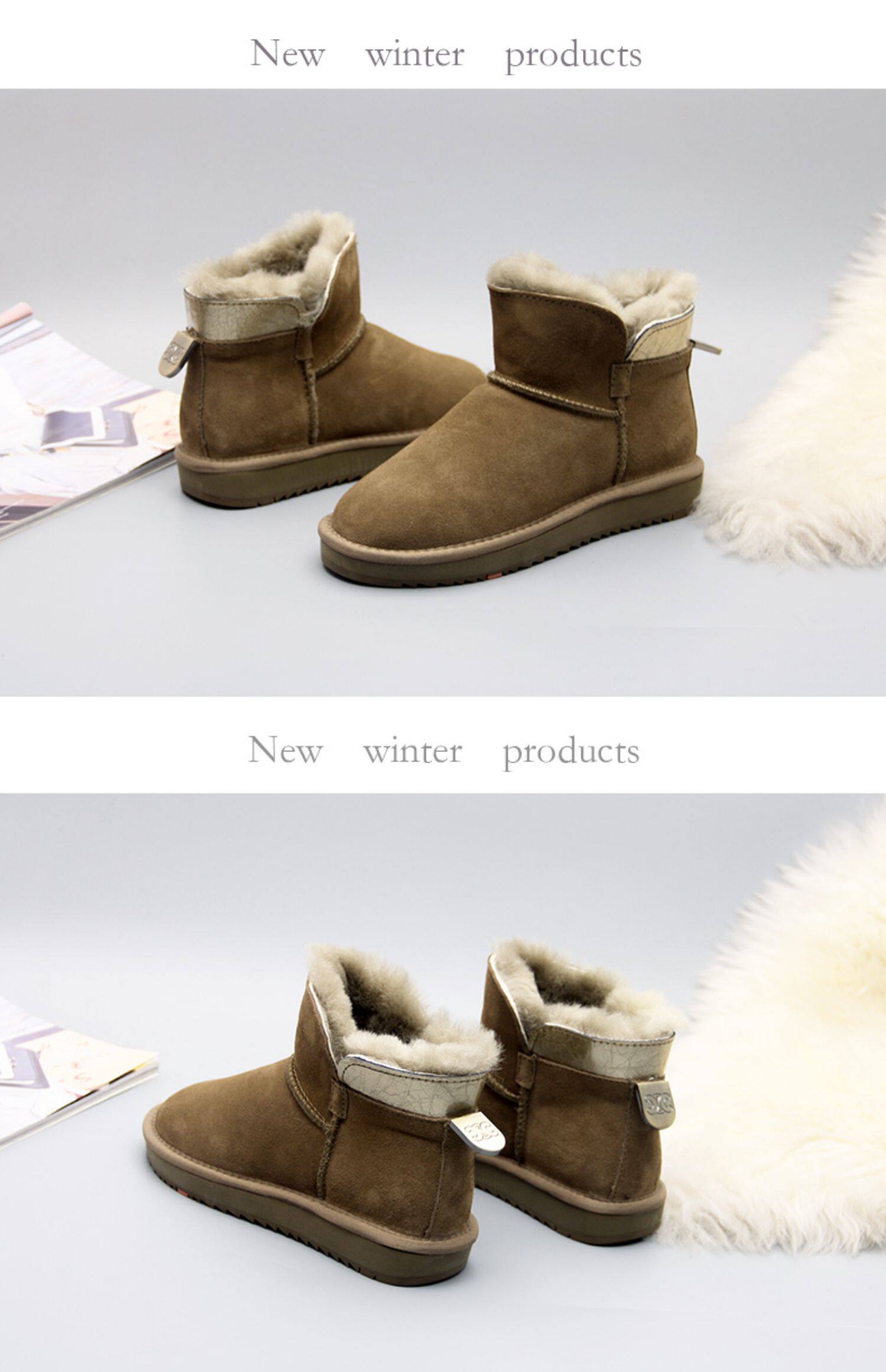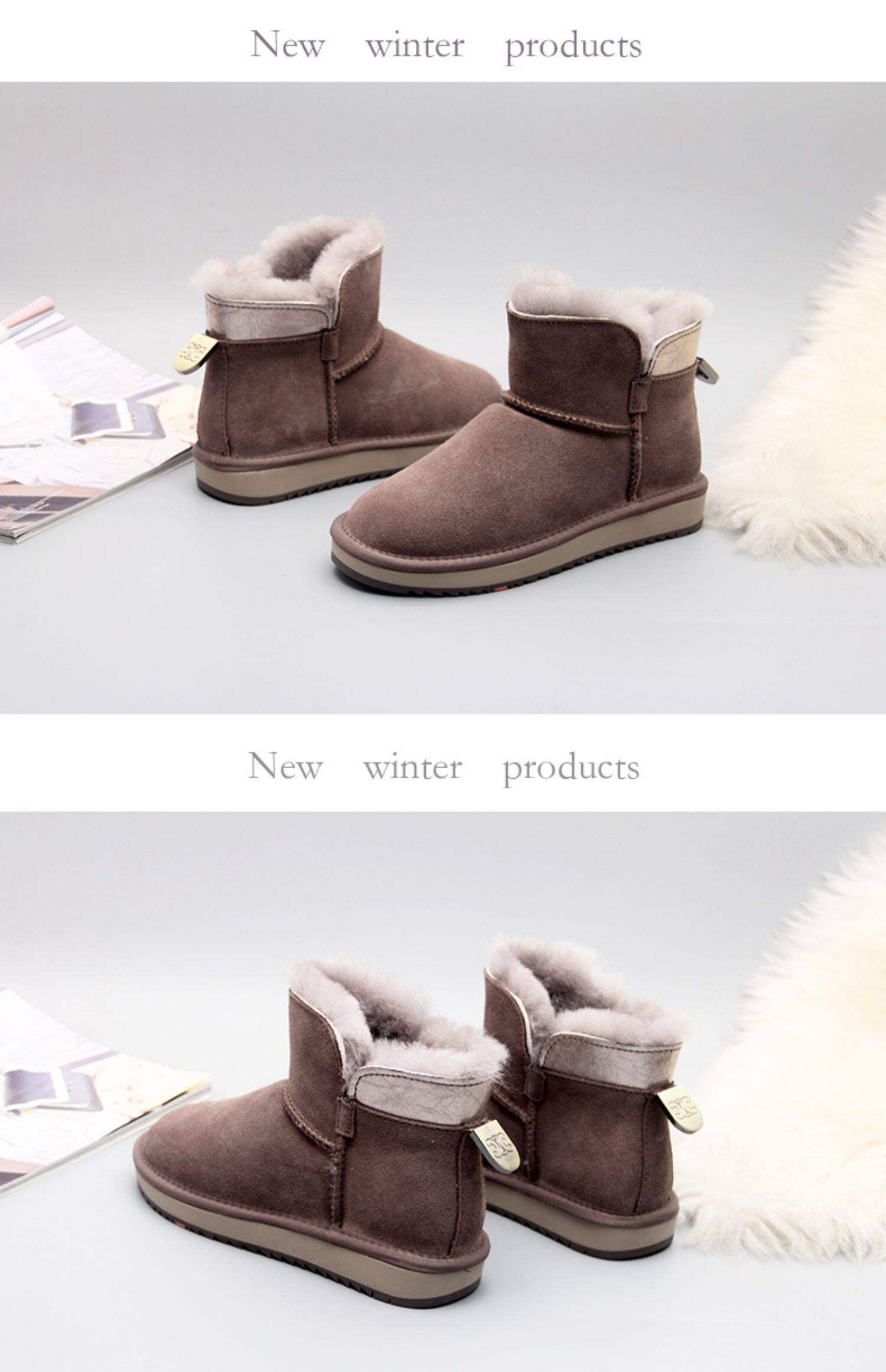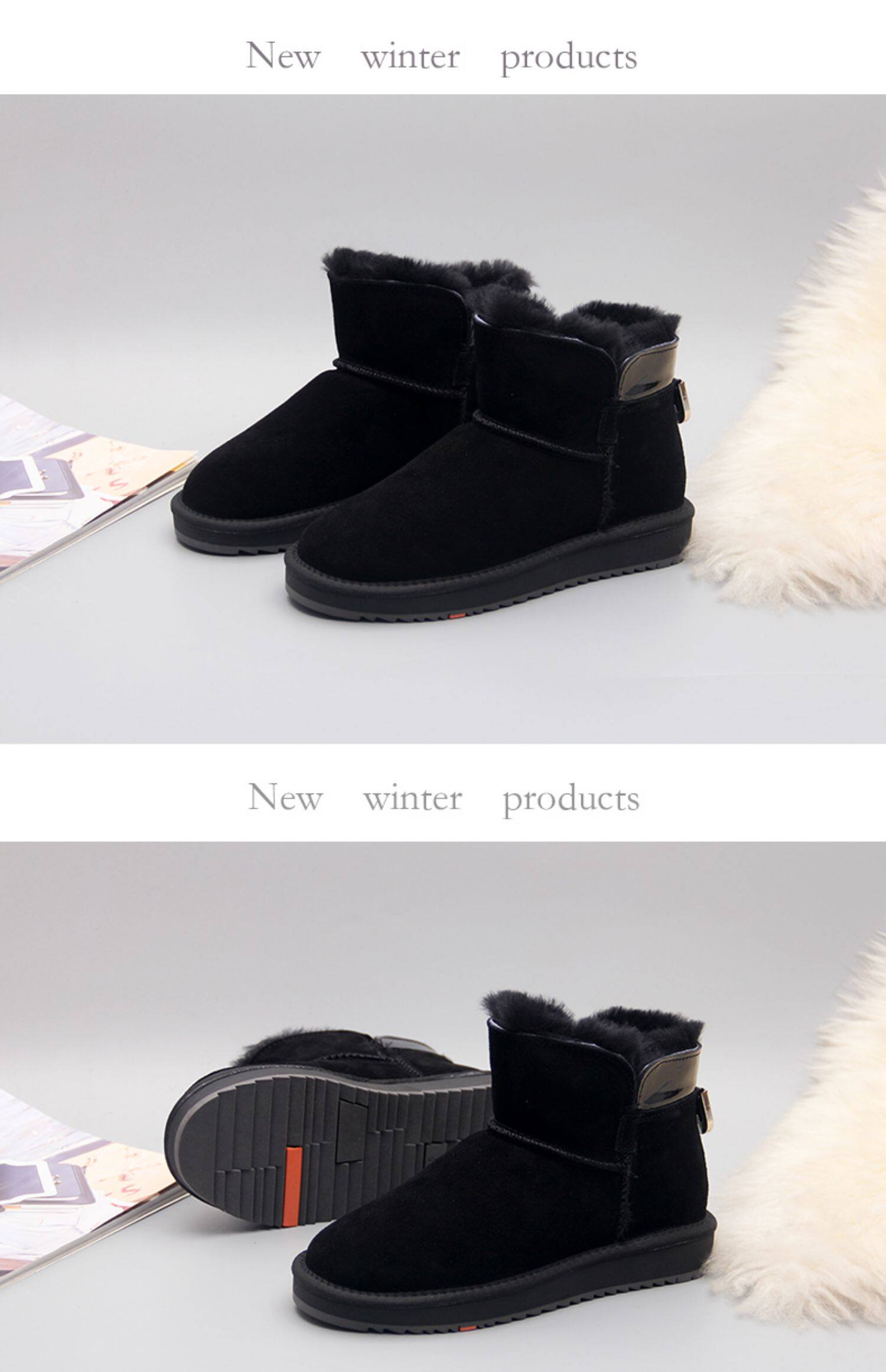 Кожаные нескользящие зимние утепленные короткие сапоги, коллекция 2022
