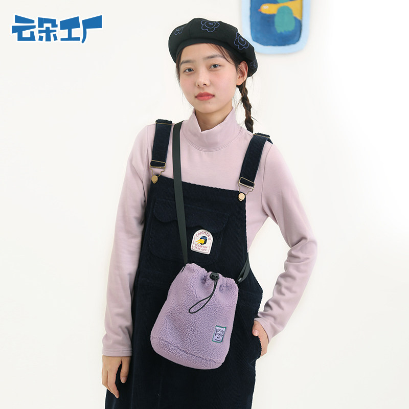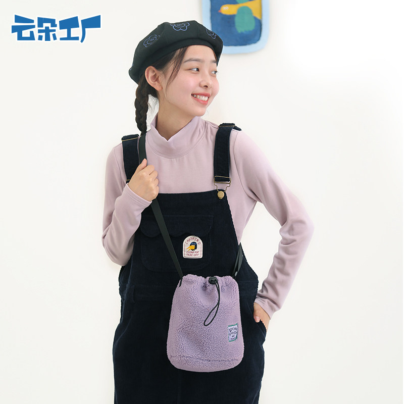 Плюшевый демисезонный динозавр, сумка на одно плечо, сумка через плечо, милая сиреневая небольшая сумка, облако, на шнурках, в корейском стиле