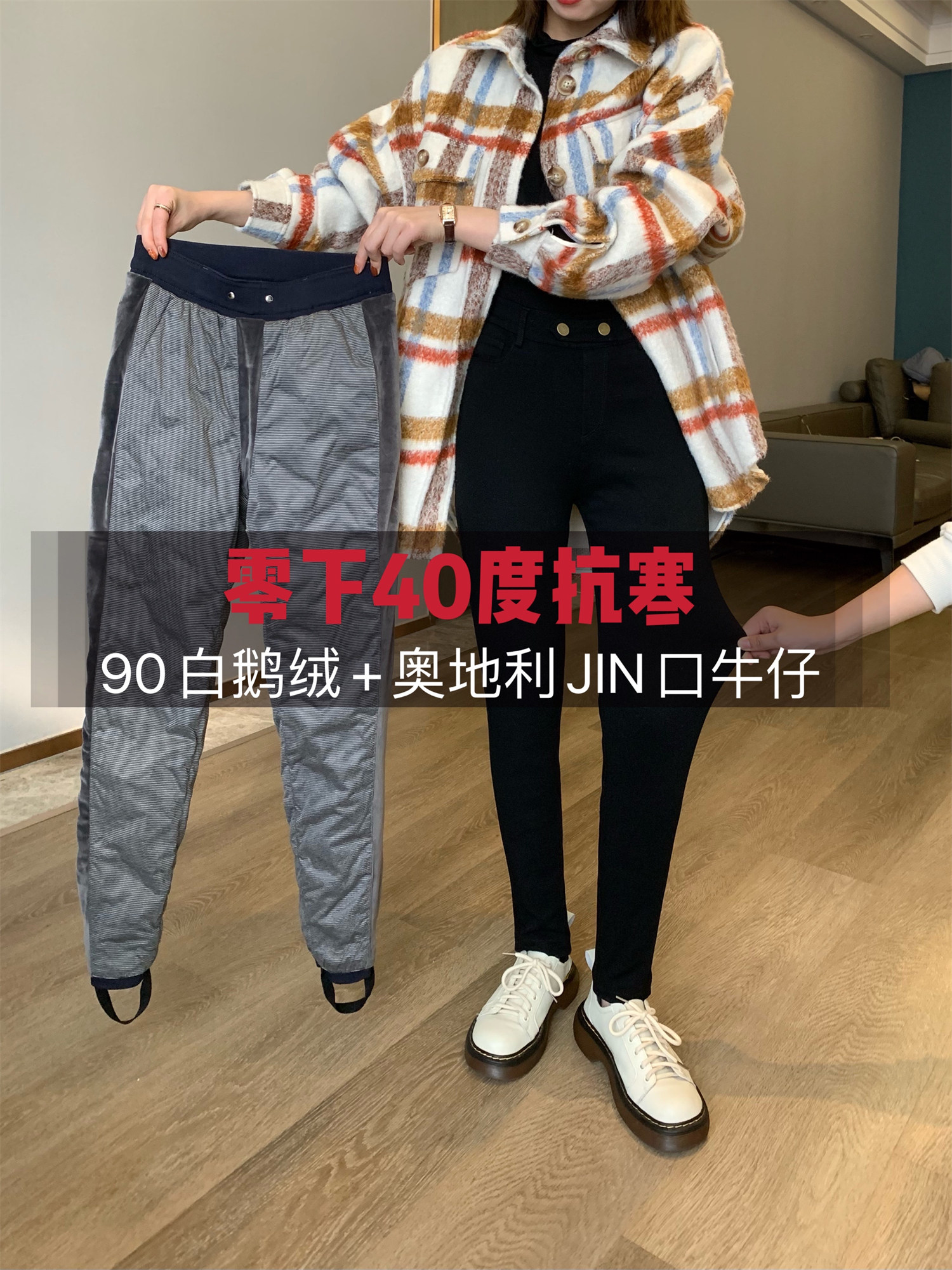 Бархатные удерживающие тепло штаны с пухом, 40, гусиный пух
