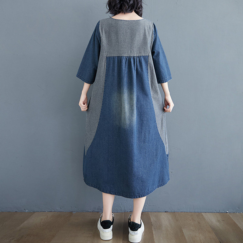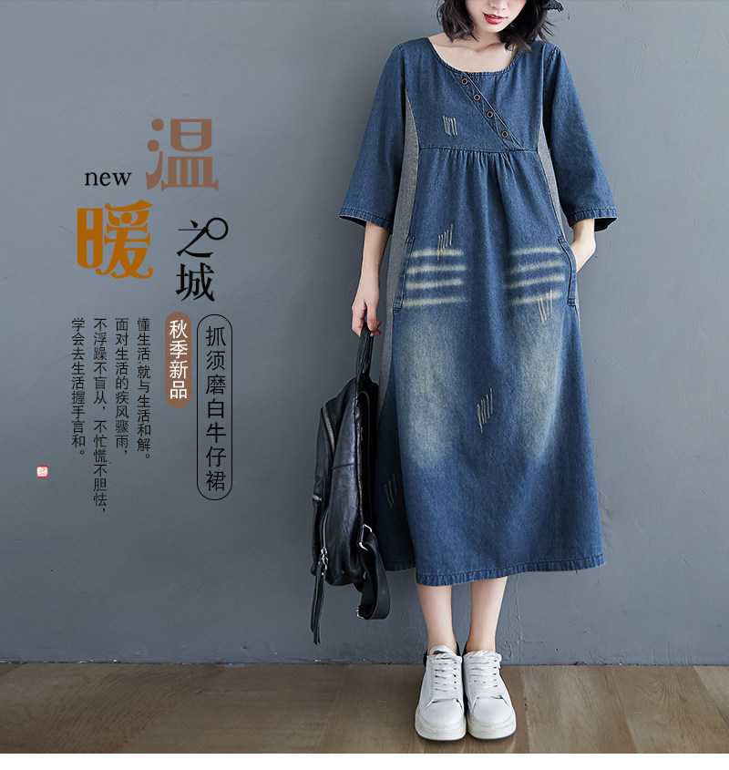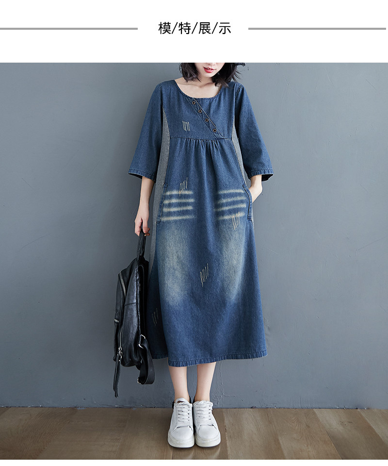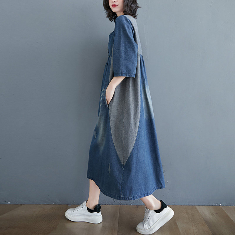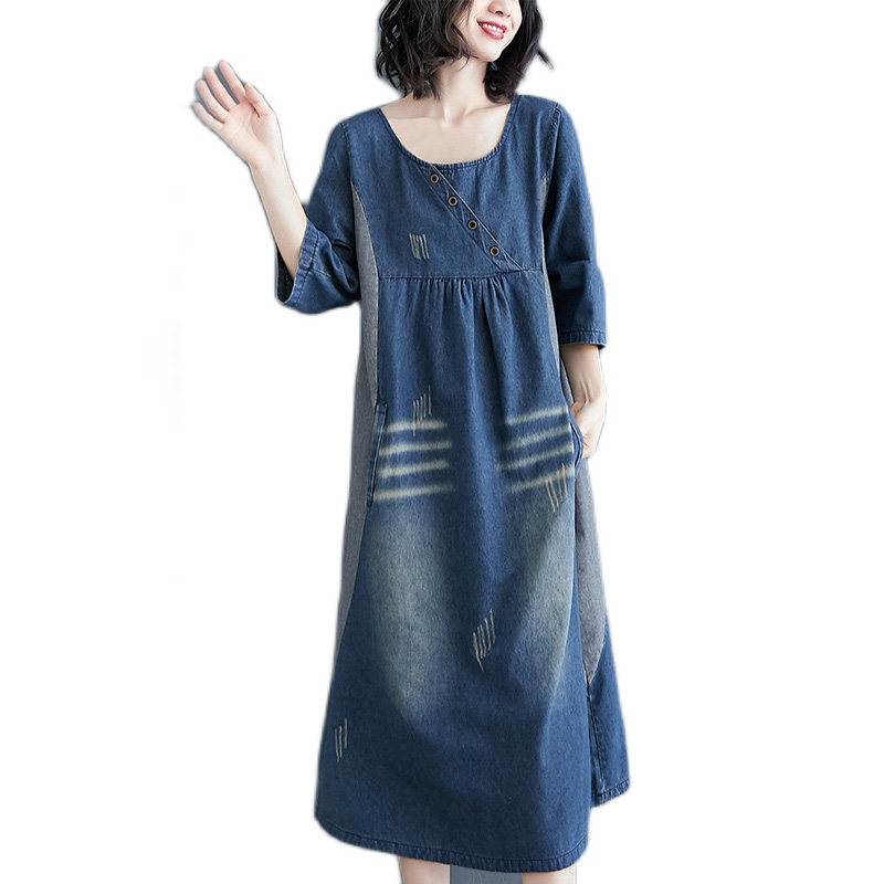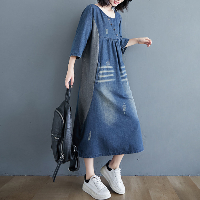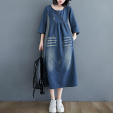 Ретро длинное джинсовое платье с рукавами, большой размер, свободный крой, средней длины, длина макси