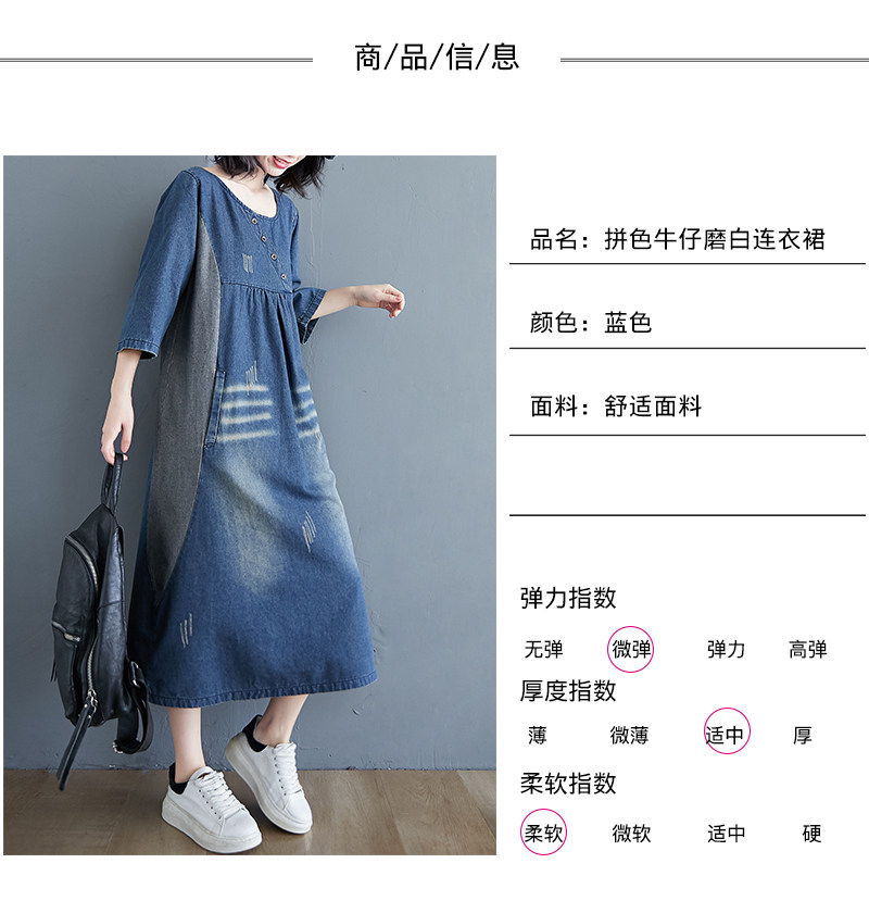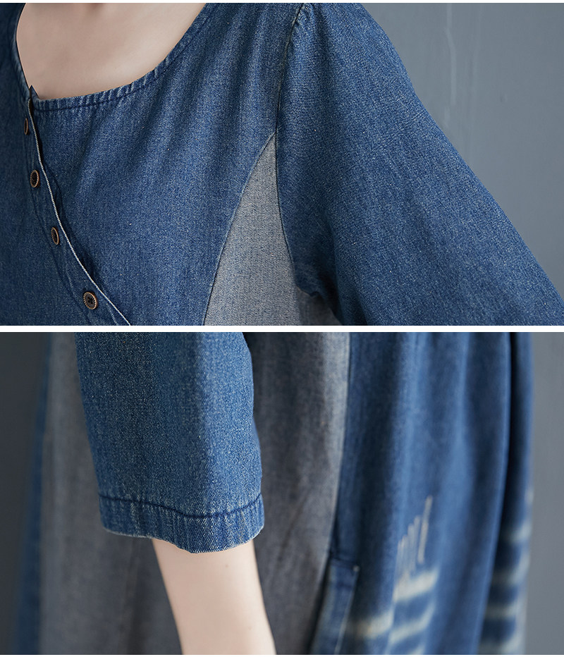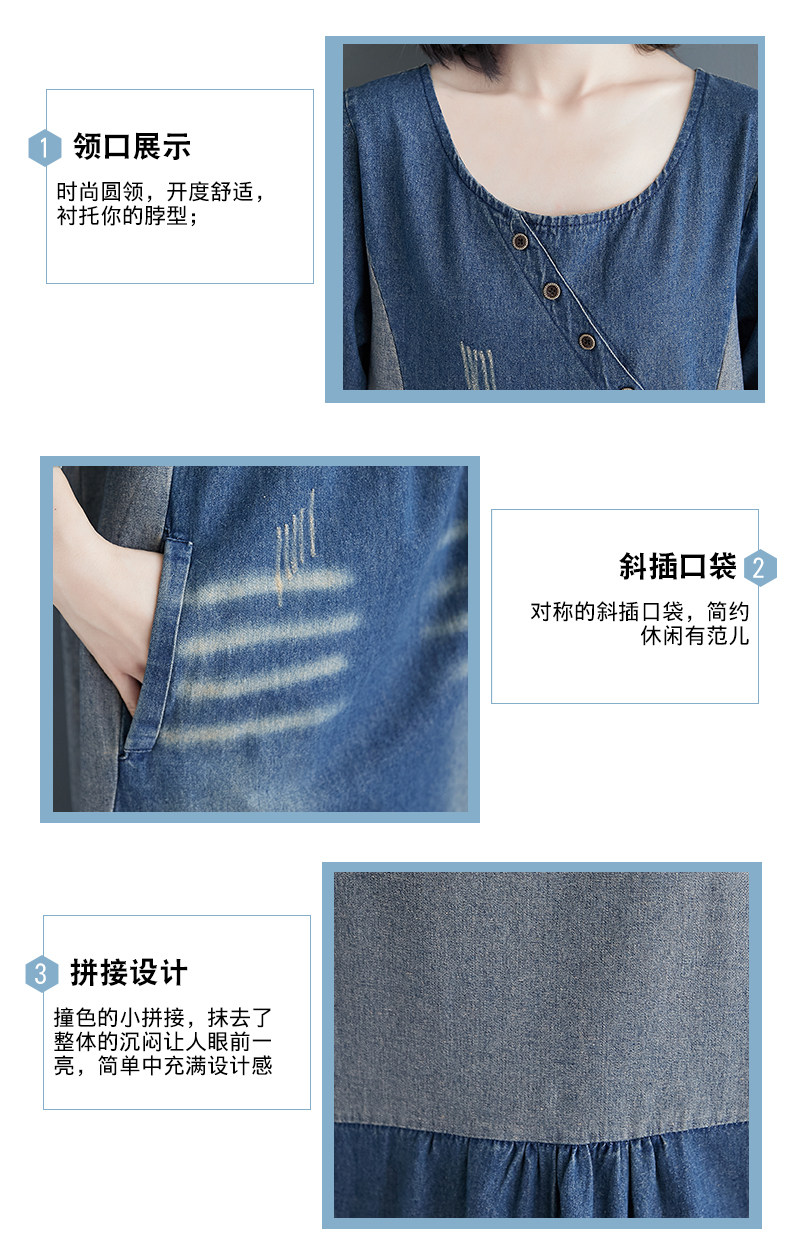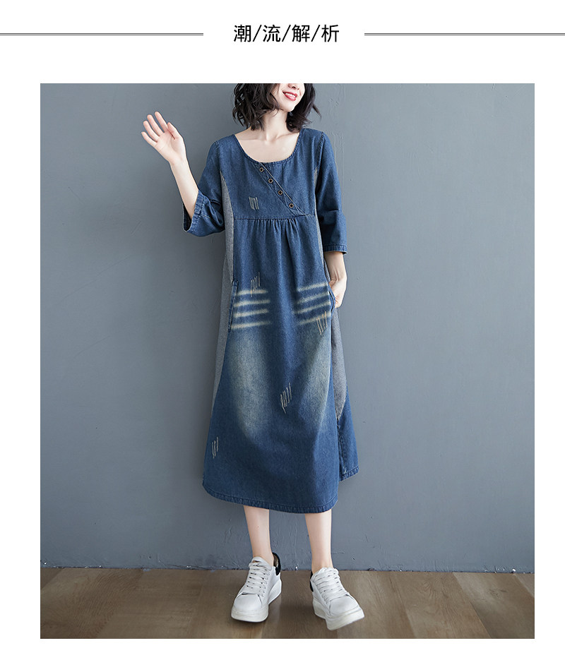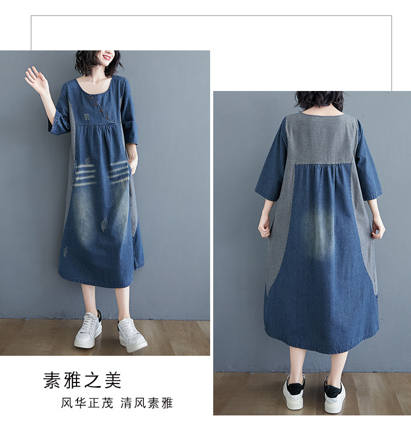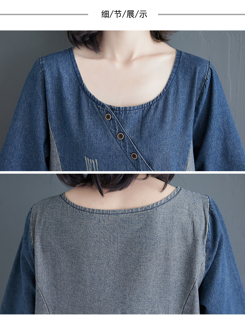 Ретро длинное джинсовое платье с рукавами, большой размер, свободный крой, средней длины, длина макси