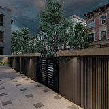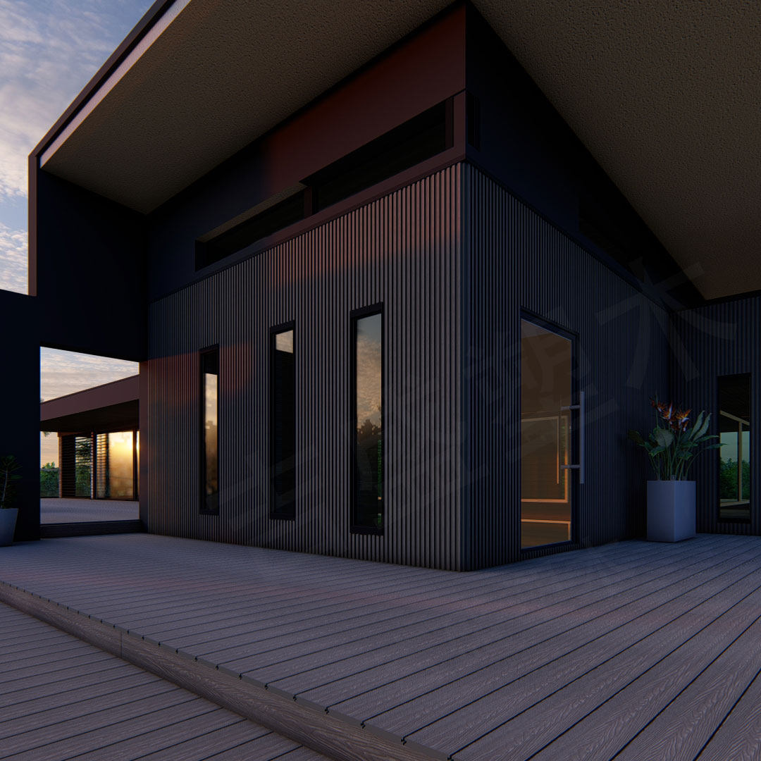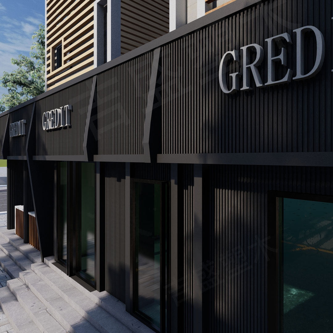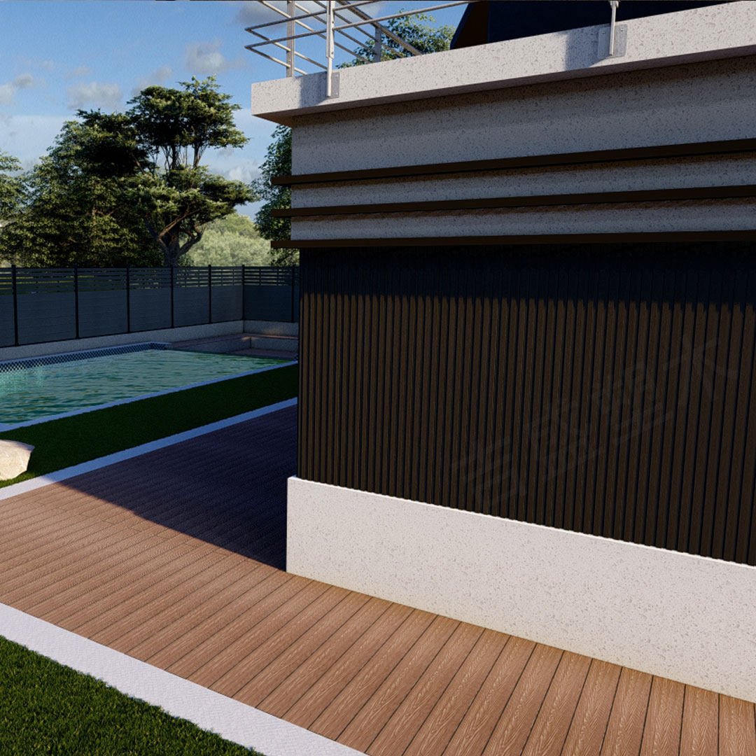 Современная анти -коррозионная пластиковая деревянная наборная доска для открытого магазина на открытом воздухе настенная дверь.