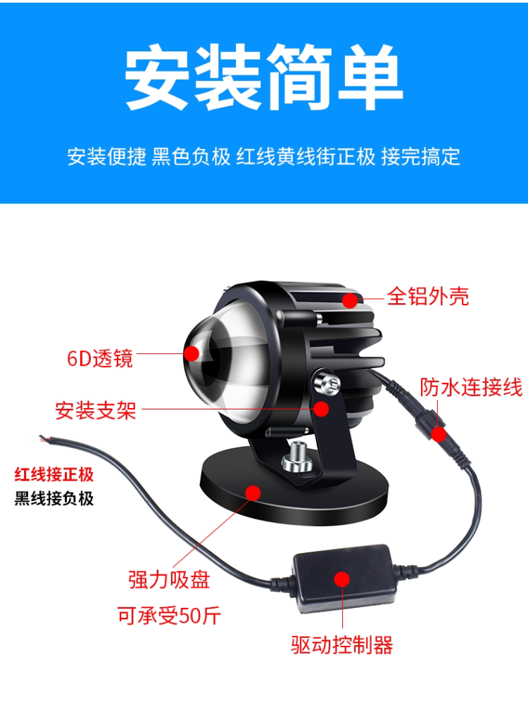 - Два белого света+линия вспышки дистанционного управления+сильное всасывание магнита