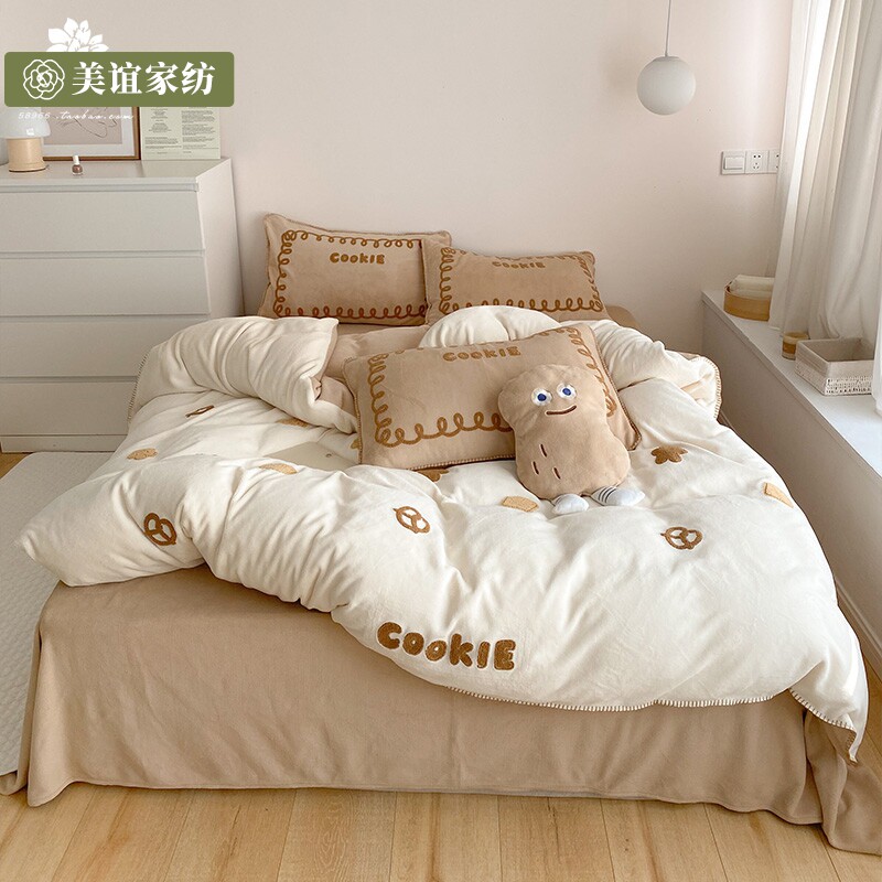 Милый брендовый мультяшный коралловый комплект, двусторонний флисовый демисезонный пододеяльник, покрывало, 4 предмета