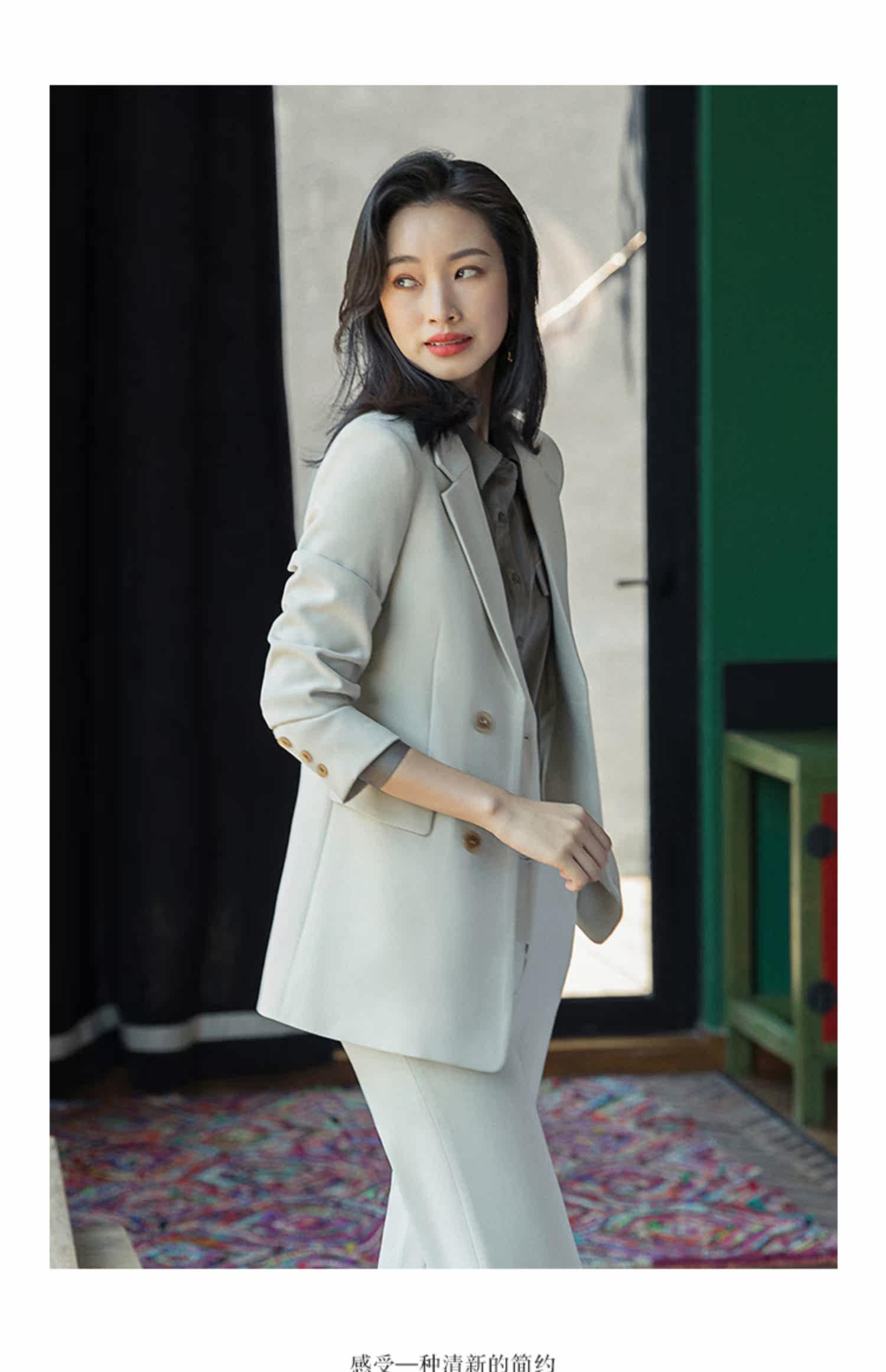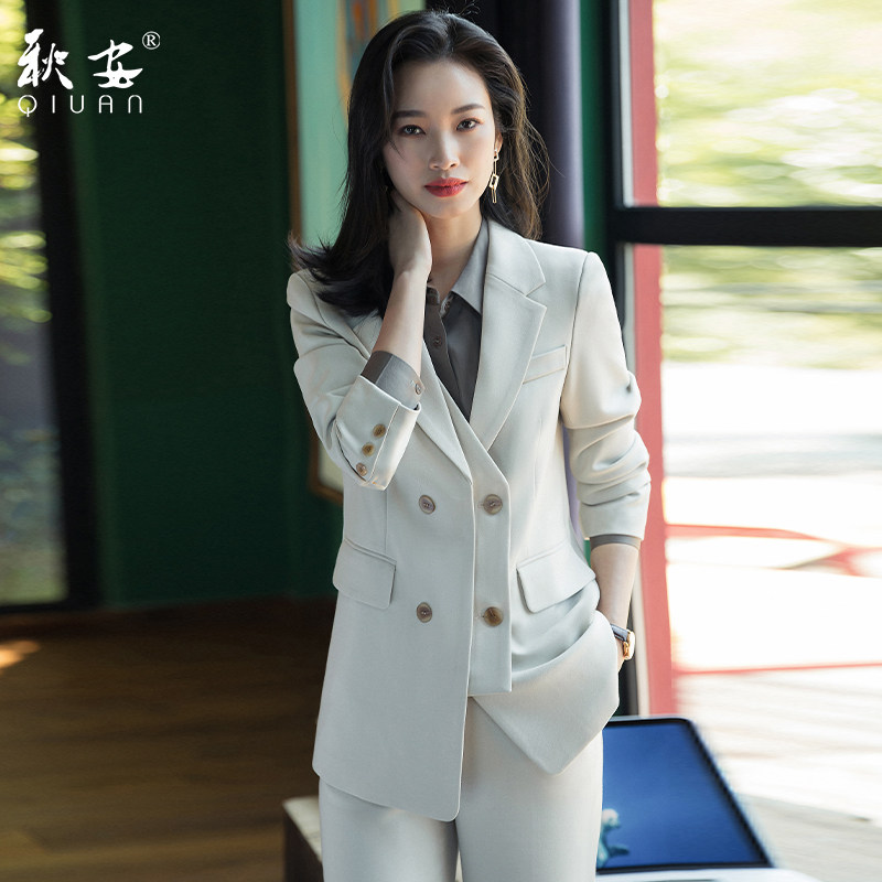 Комплект, модный костюм для работы, весенний абрикосовый пиджак классического кроя, яркий броский стиль, 2023
