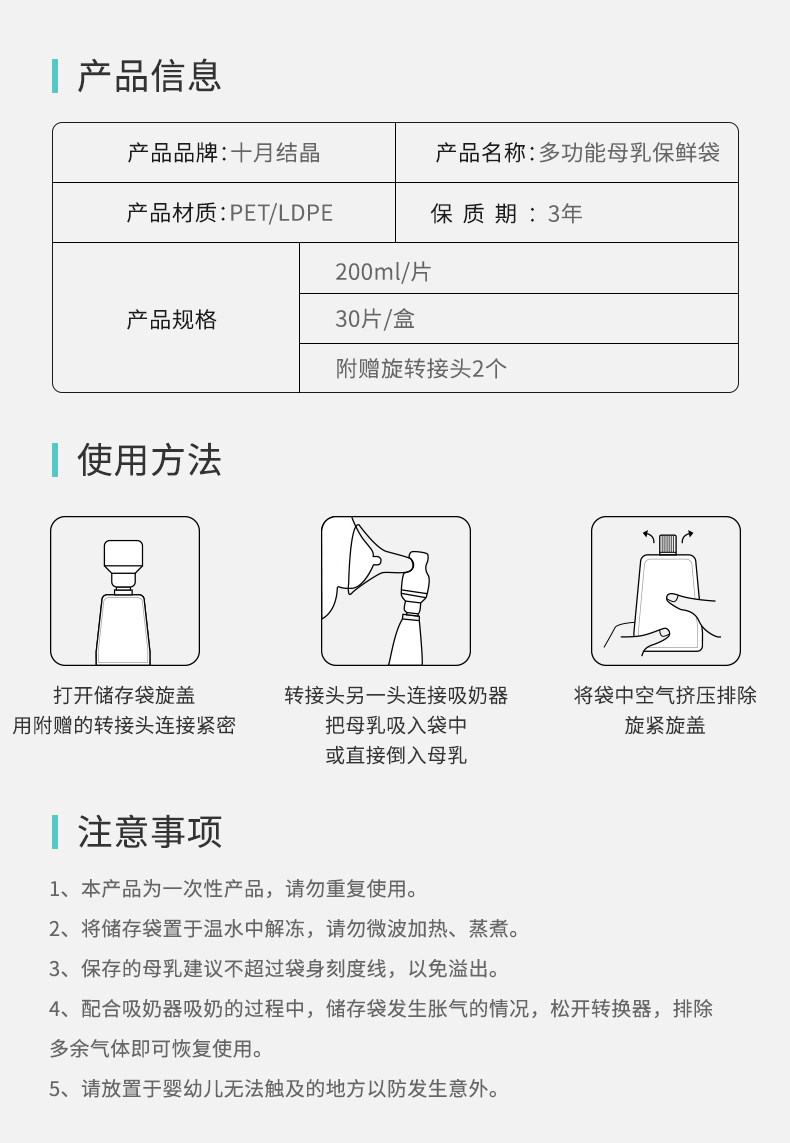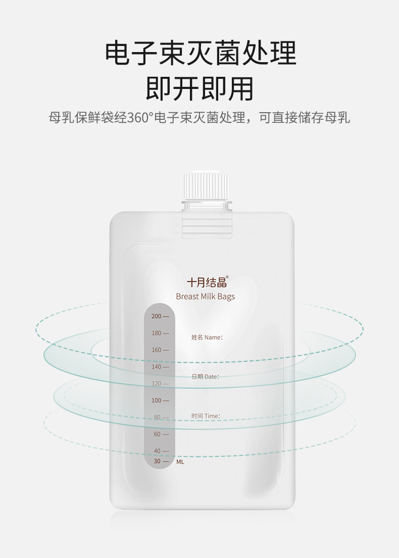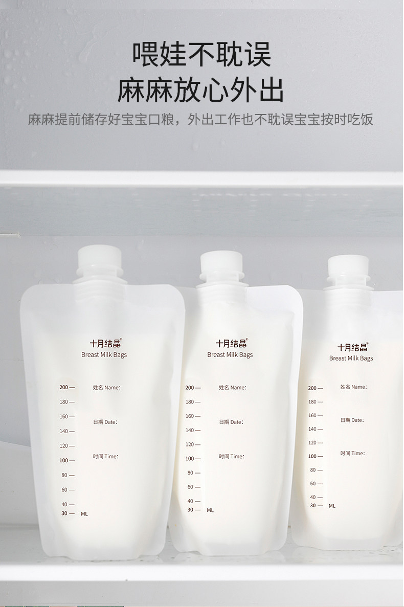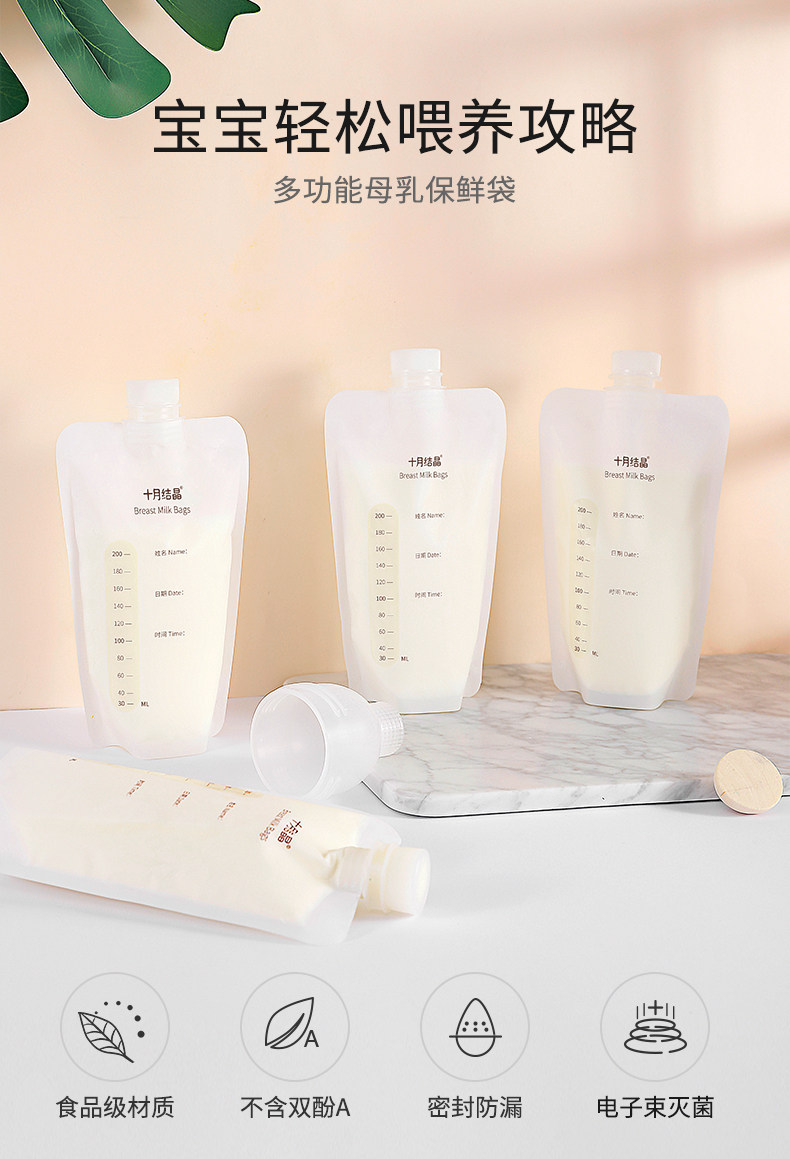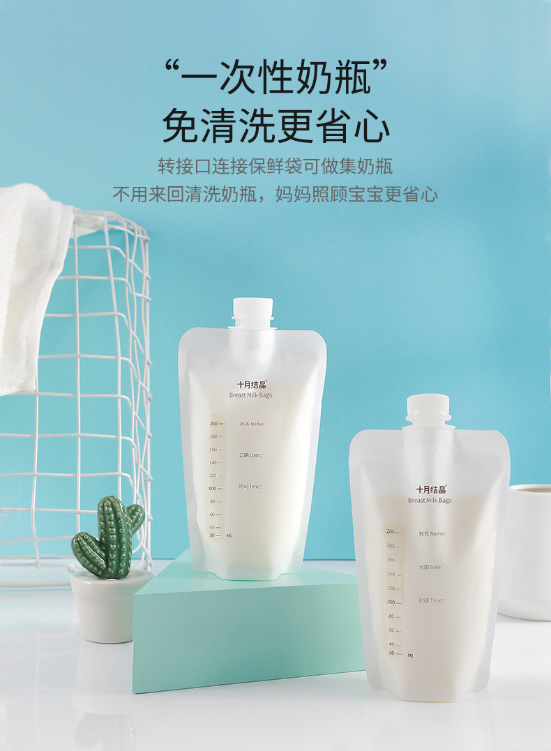 十月结晶 Универсальная ёмкость для хранения молока, молокоотсос, вместительная и большая сумка для хранения, 200 мл, 30 штук