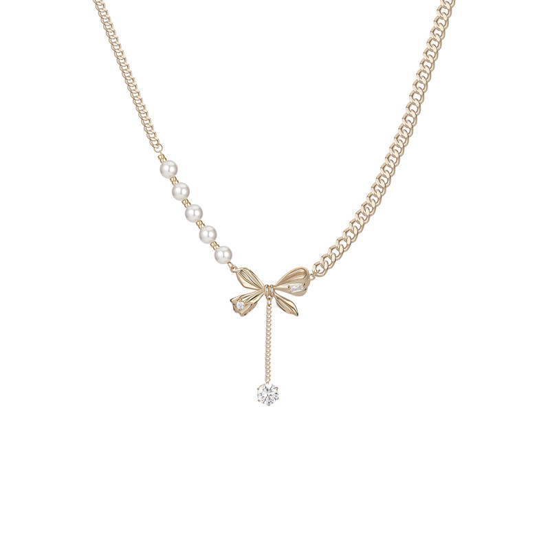 Модное изысканное ожерелье с бантиком из жемчуга