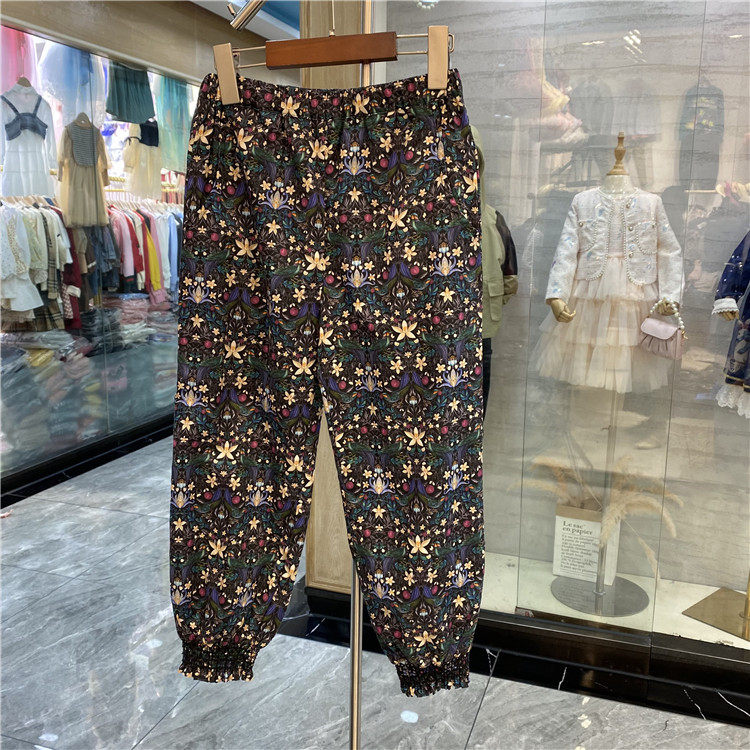 Импортная детская ткань, осенние демисезонные хлопковые штаны, подходит для подростков, цветочный принт