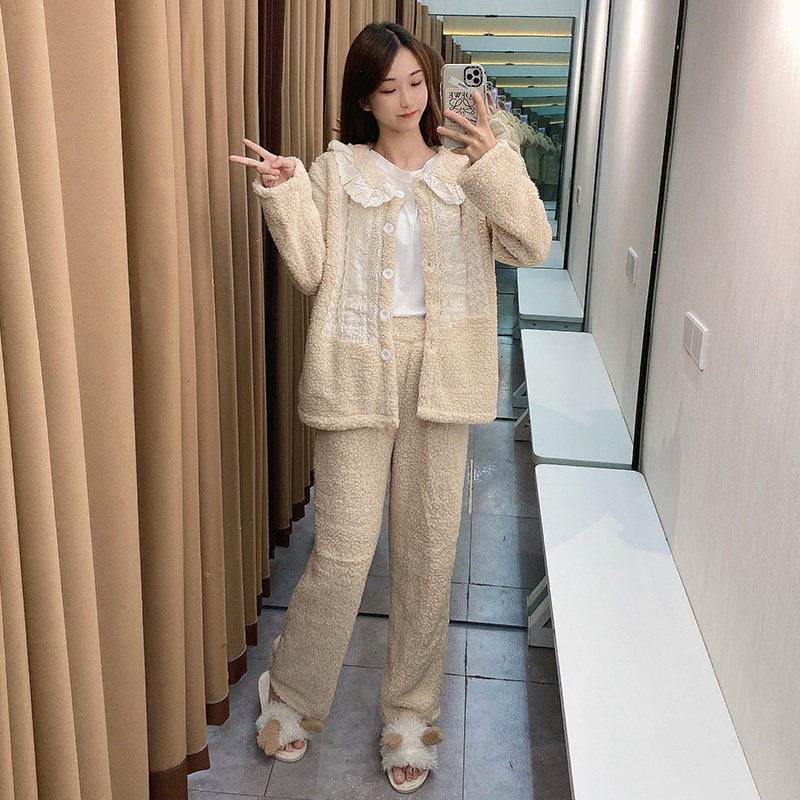 Утепленная розовая коралловая бархатная осенняя милая зимняя пижама, 2021 года