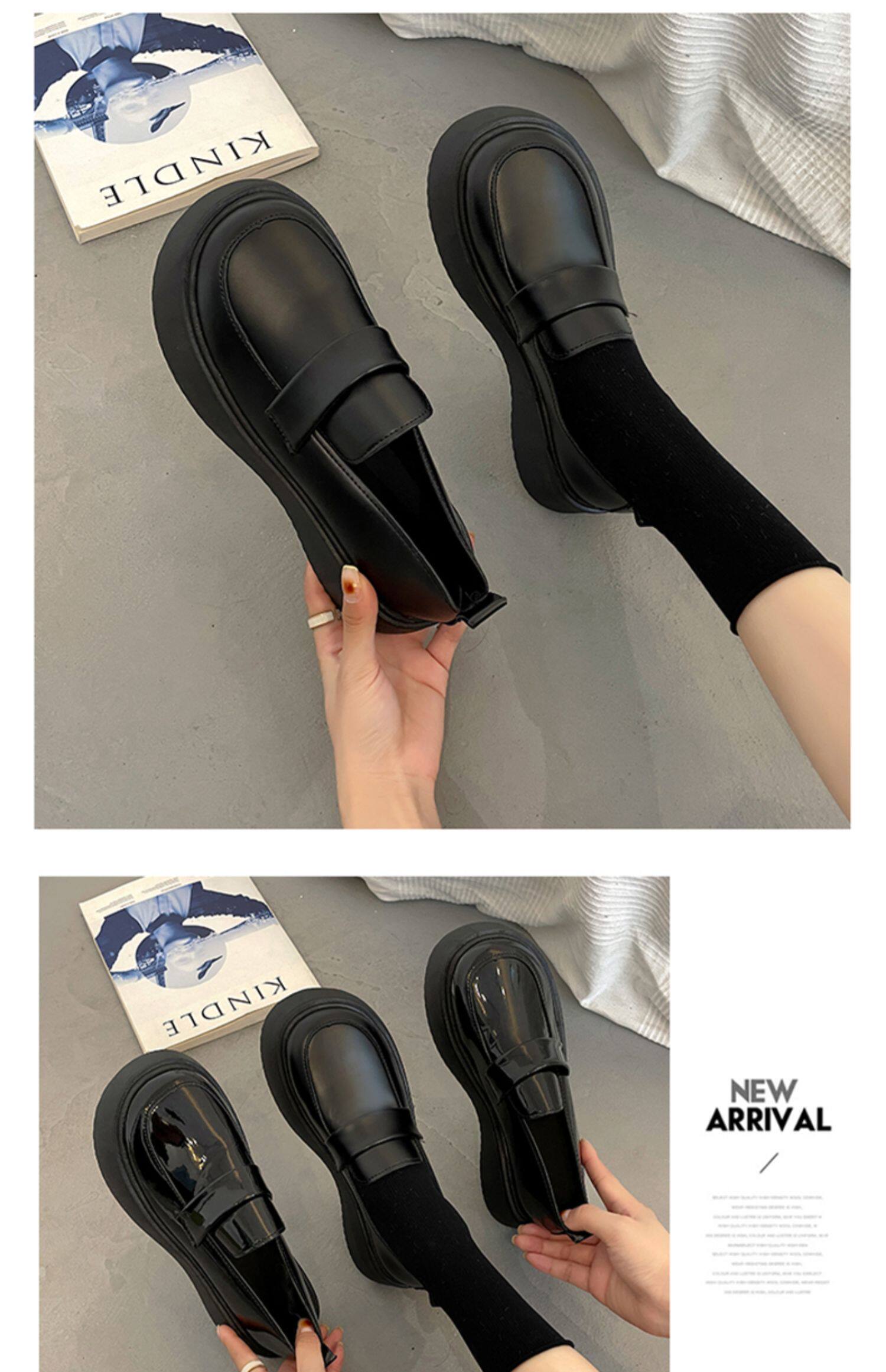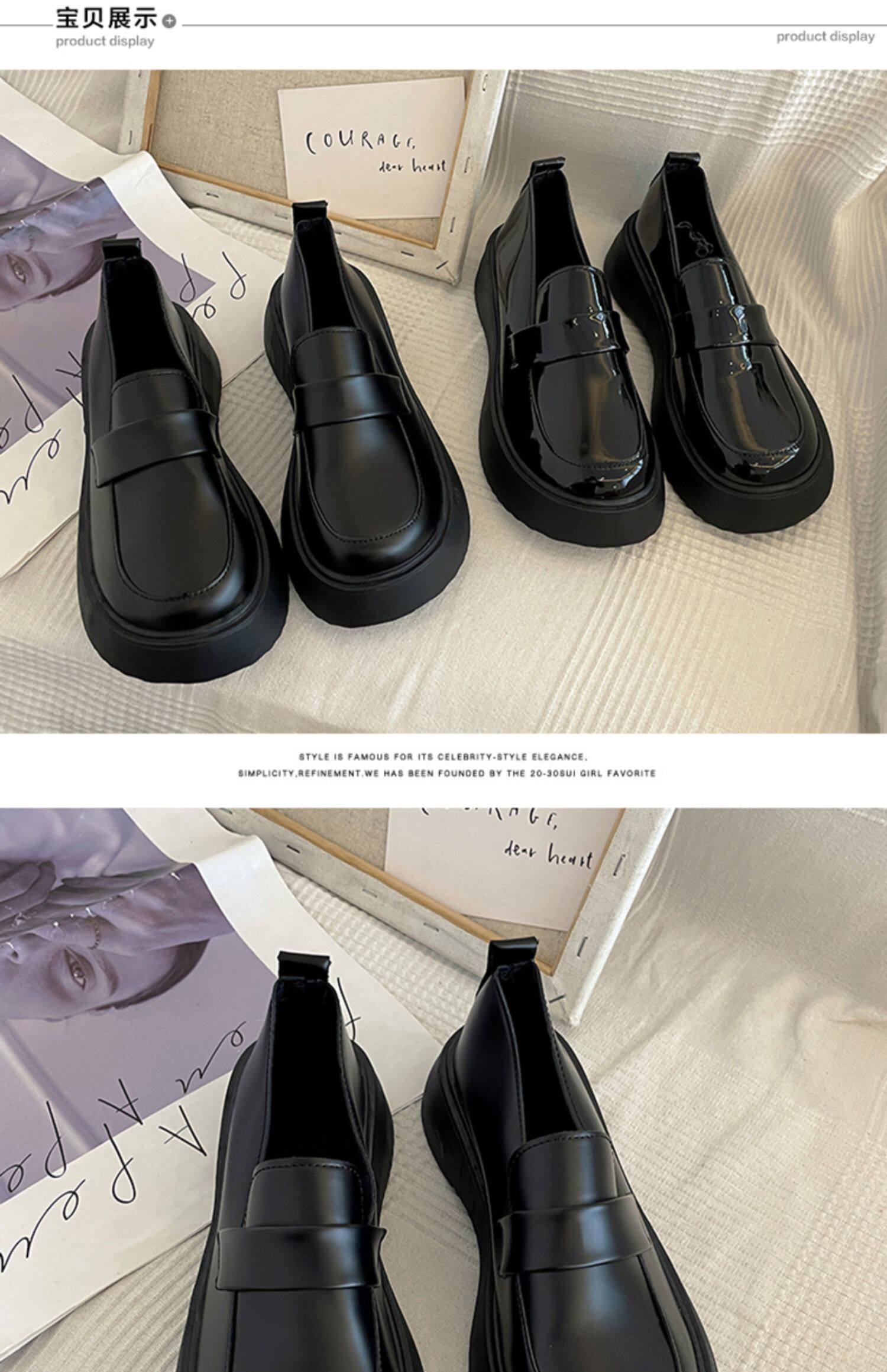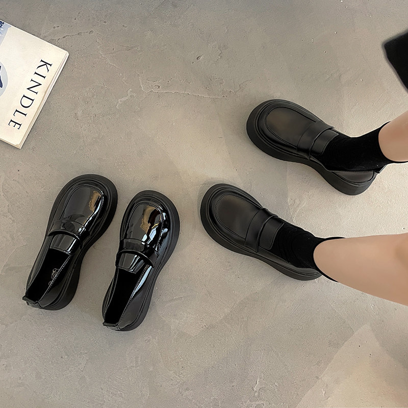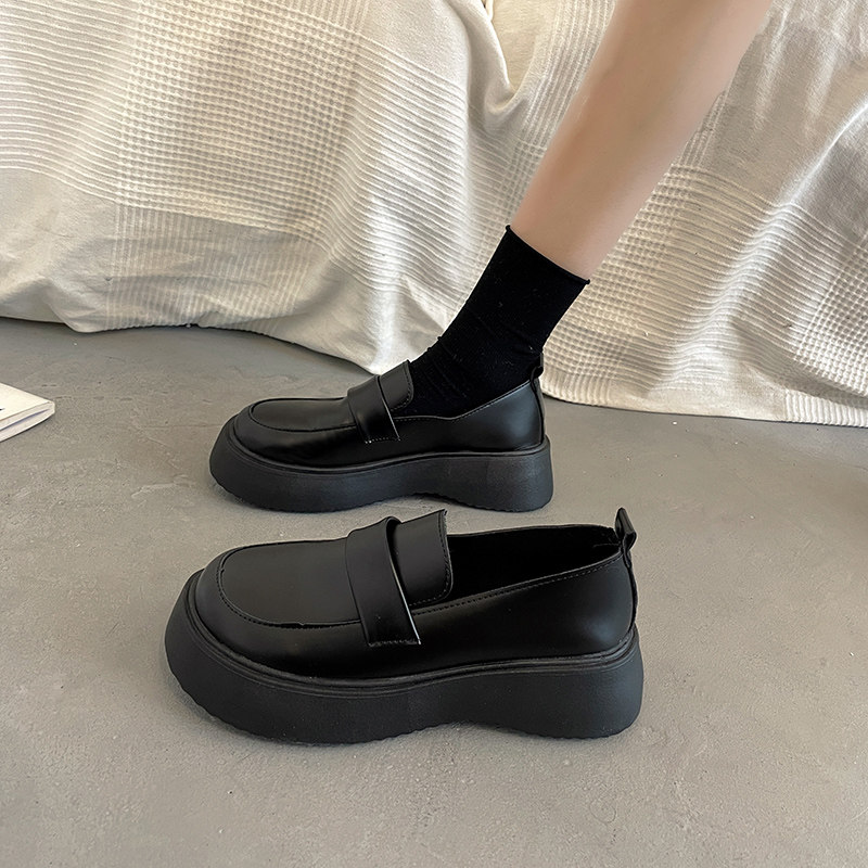 Черная демисезонная японская обувь в английском стиле на платформе для кожаной обуви, лоферы, коллекция 2023, в британском стиле