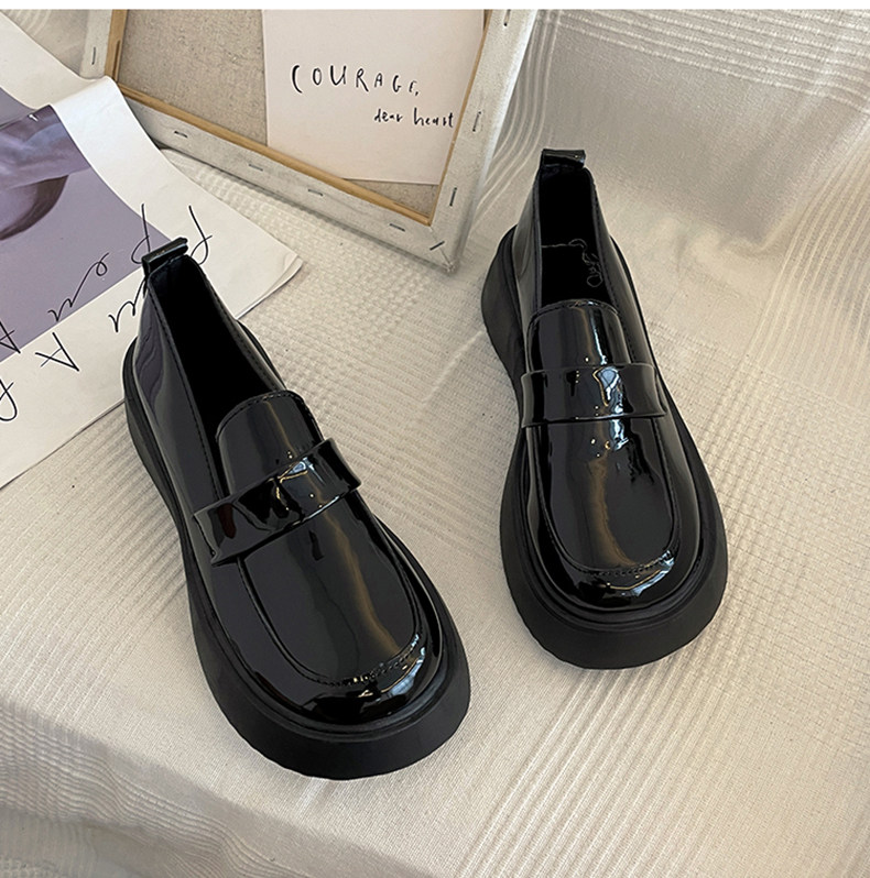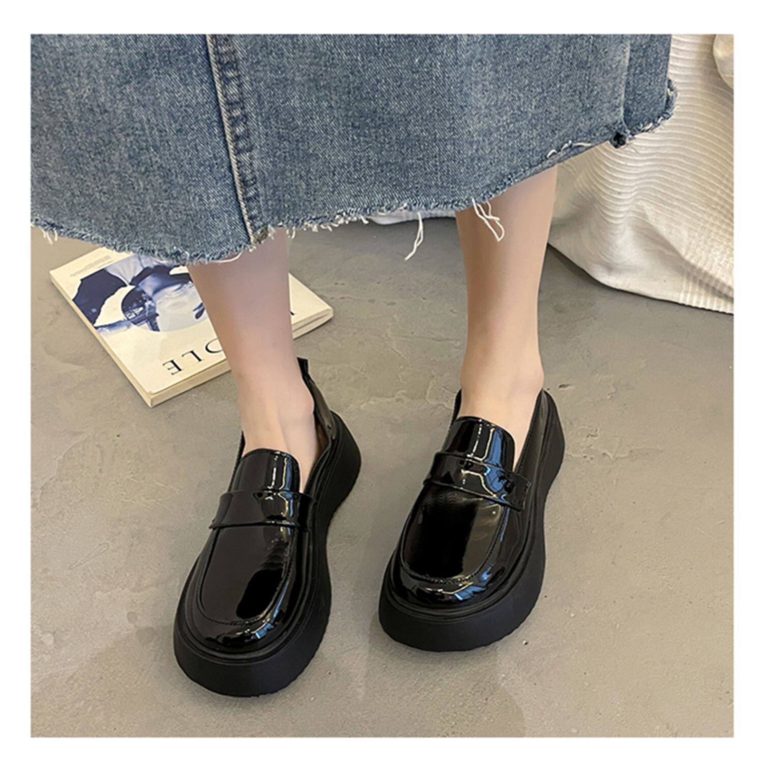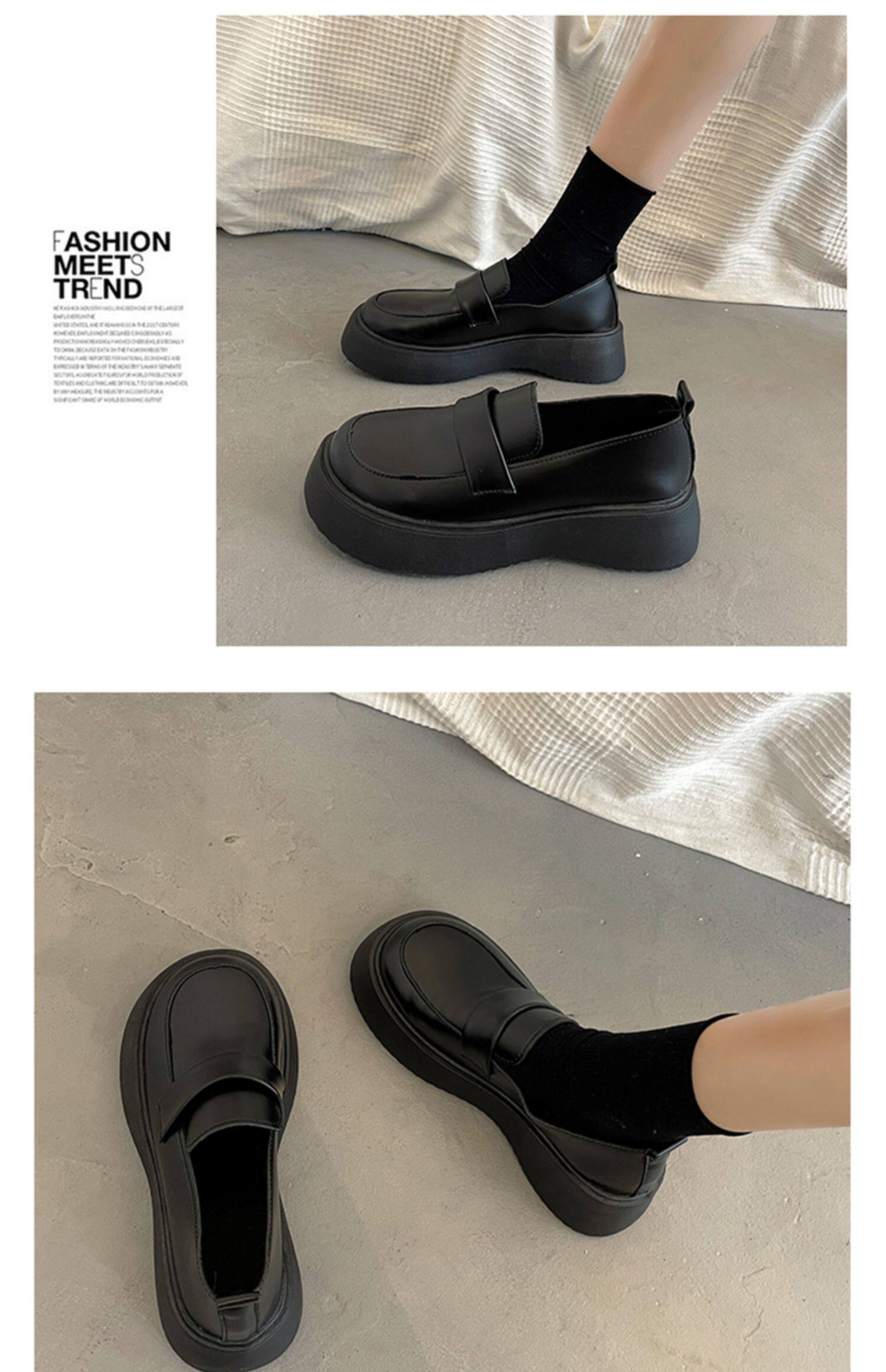 Черная демисезонная японская обувь в английском стиле на платформе для кожаной обуви, лоферы, коллекция 2023, в британском стиле