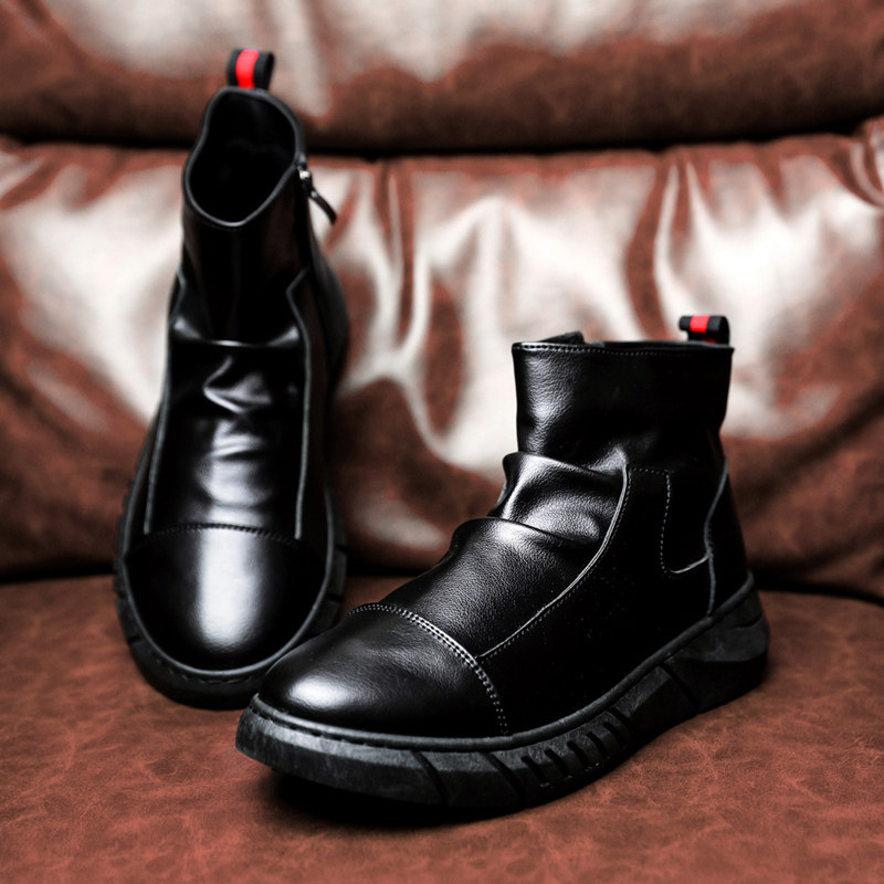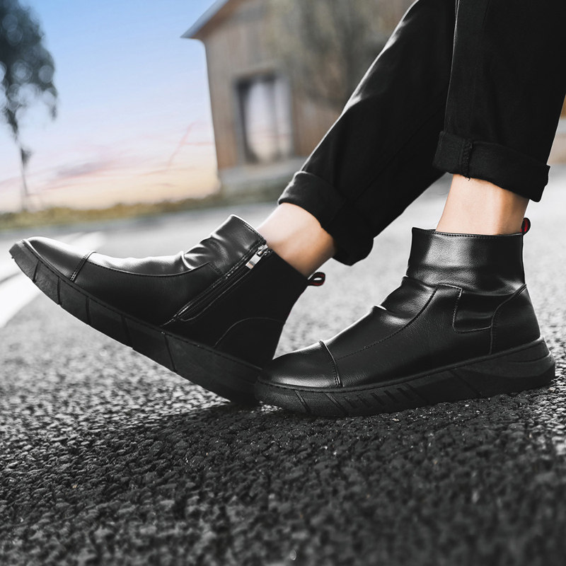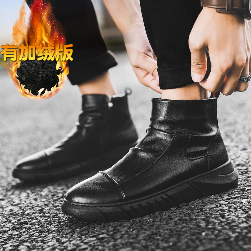 Martens, демисезонная обувь в английском стиле, челси, флисовые короткие сапоги для черной кожи для кожаной обуви, в британском стиле