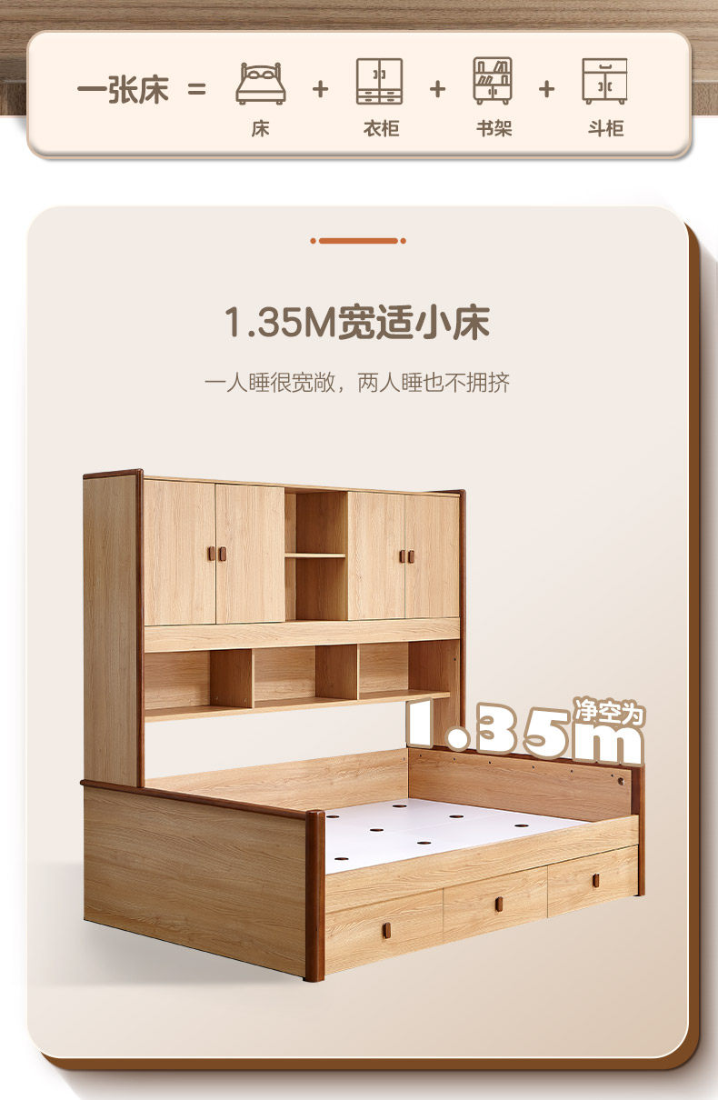 Quanyou Home Mabrishing Youth Gardreobe Bed Пол напольный шкаф -кровать интегрированные небольшие подразделения Многофункциональная кровать для хранения 121329