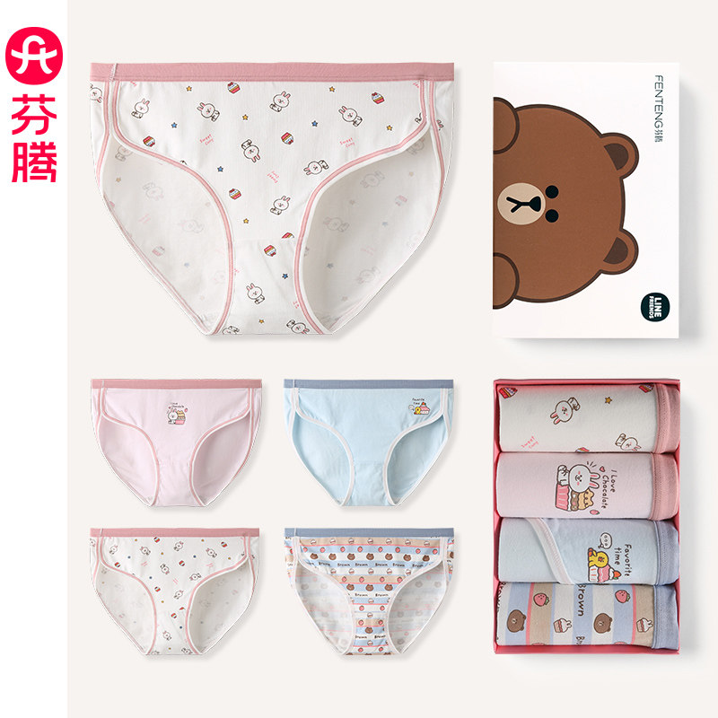 芬腾 Нижнее белье, хлопковые антибактериальные дышащие штаны, милые мультяшные шорты, трусы, средняя посадка