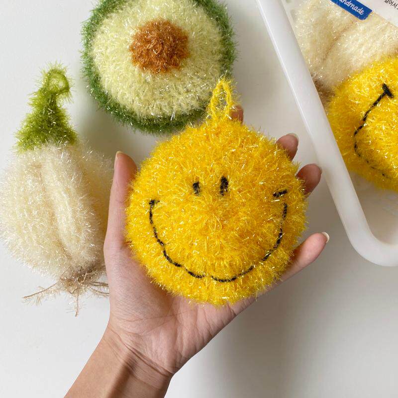 Симпатичное улыбающееся лицо Чистое ручное кухонное мытья посудомоечная биршка чистая ткань, чистящая ткань, загрязняющая миска, без липкого масляного стеклоочистителя