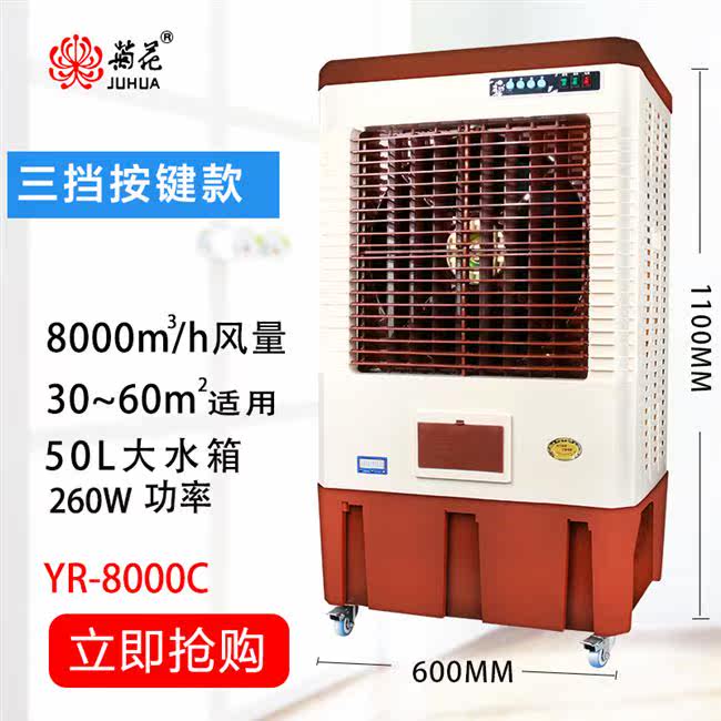 8000A Промышленные холодные плавники 60㎡ вода, воздухозадавленные, кондиционируемые воздушными воздушными, вентиляционными вентиляторами.