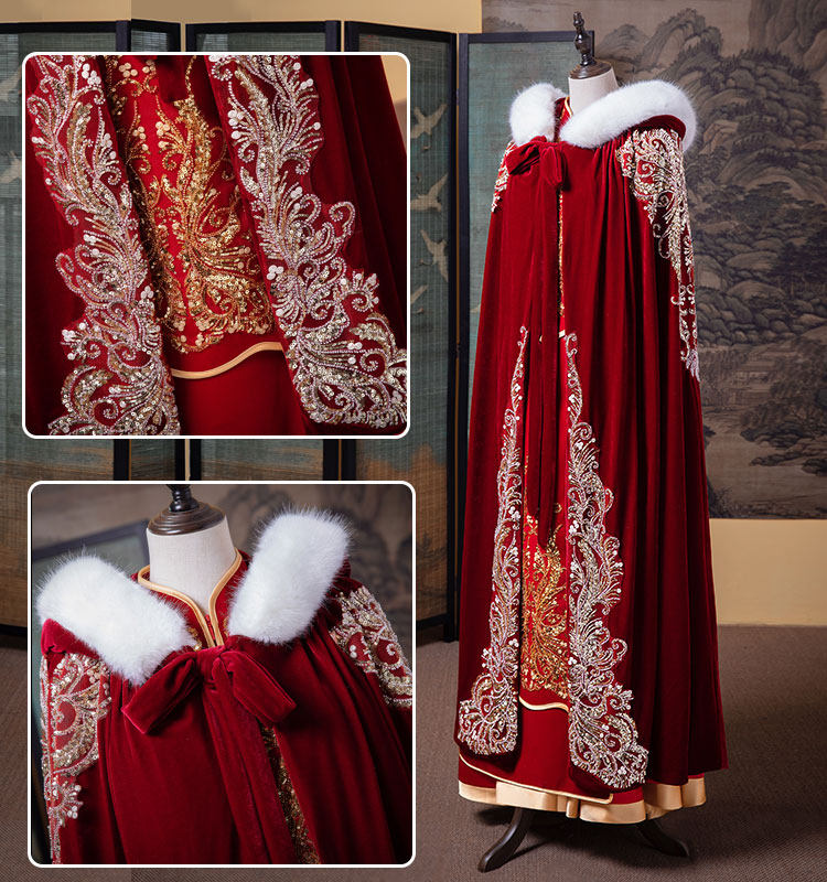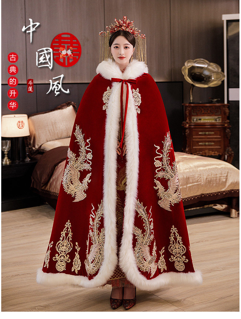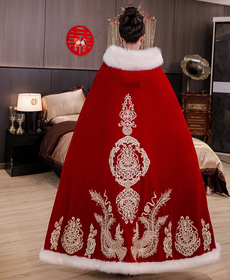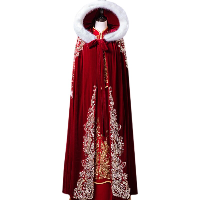 Плащ для невесты, удерживающая тепло накидка, зимнее красное ханьфу, китайский стиль, увеличенная толщина