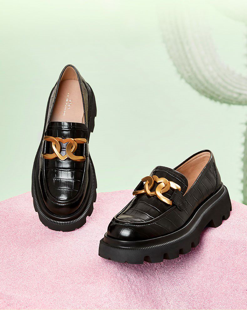 Tata, она ретро-цветовая блокировка толстого лофета женская универсальная пригородная кожа
