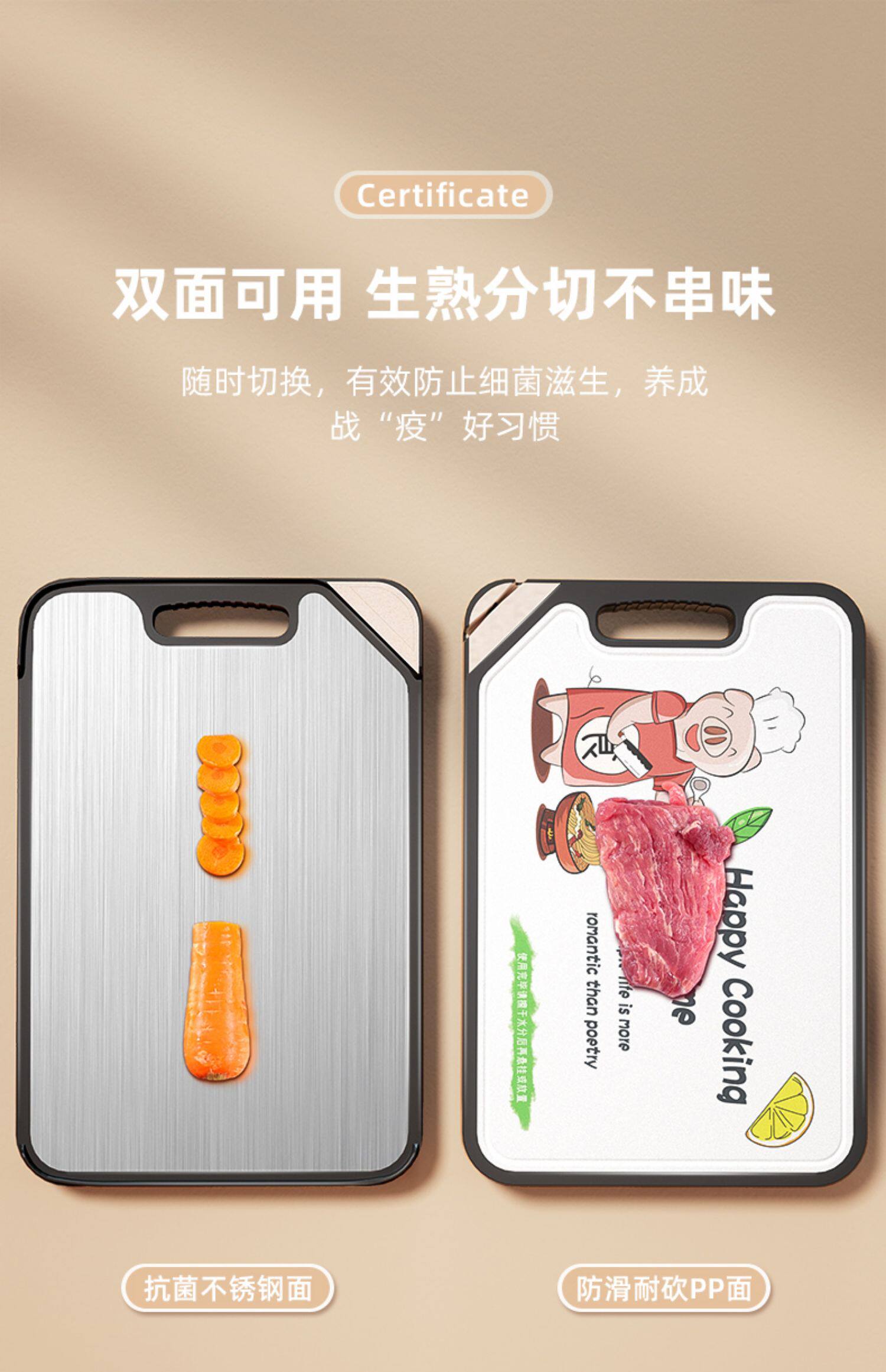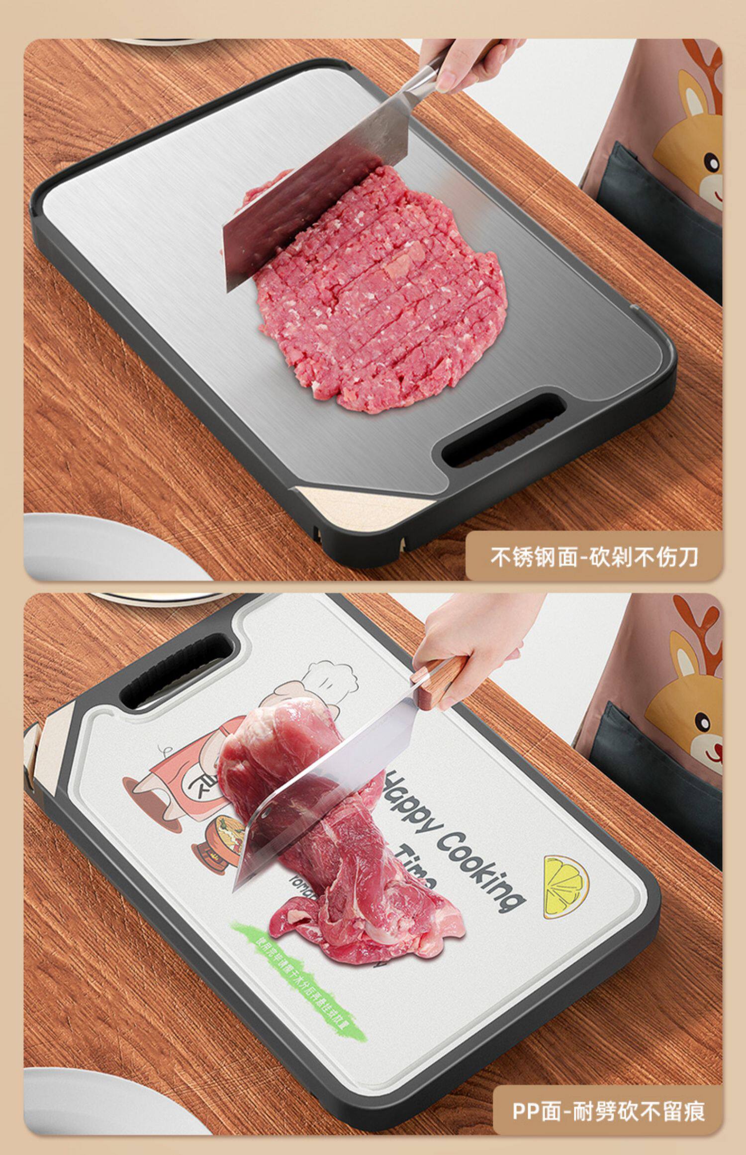 Немецкая режущая доска антибактериальная и плесень анти -мульчавовая домохозяйственная домохозяйство с двойной рубкой из нержавеющей стали кухонная доска кухонная нарезанная доска липкая лезвия