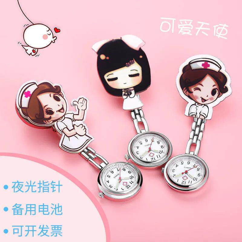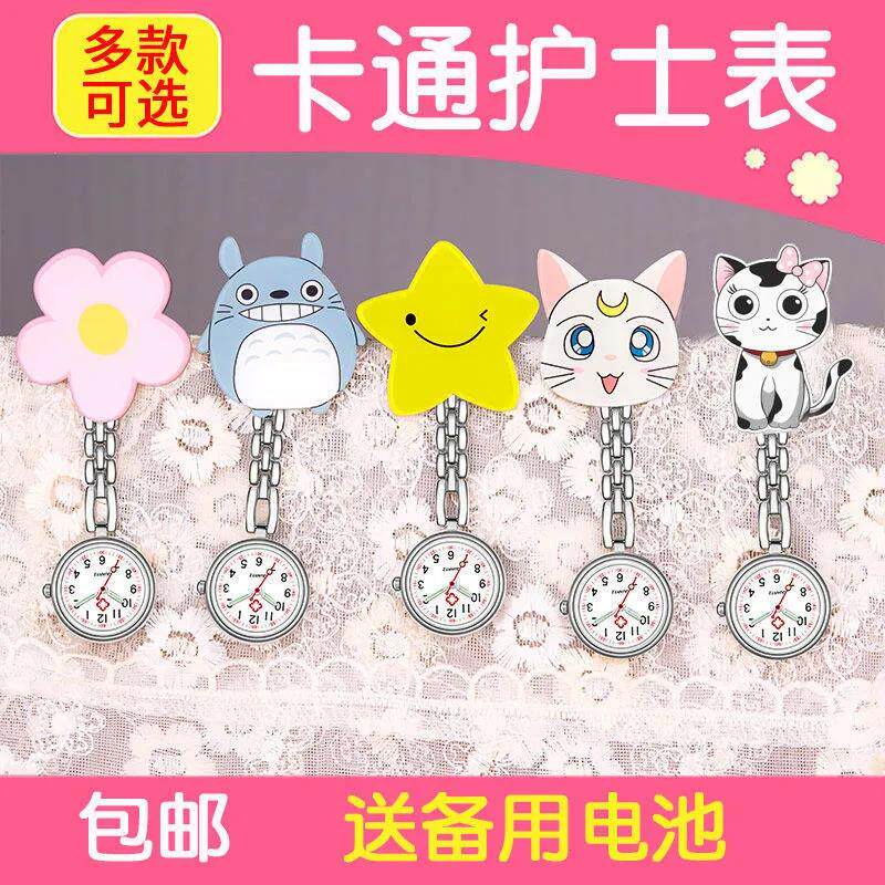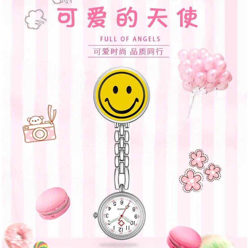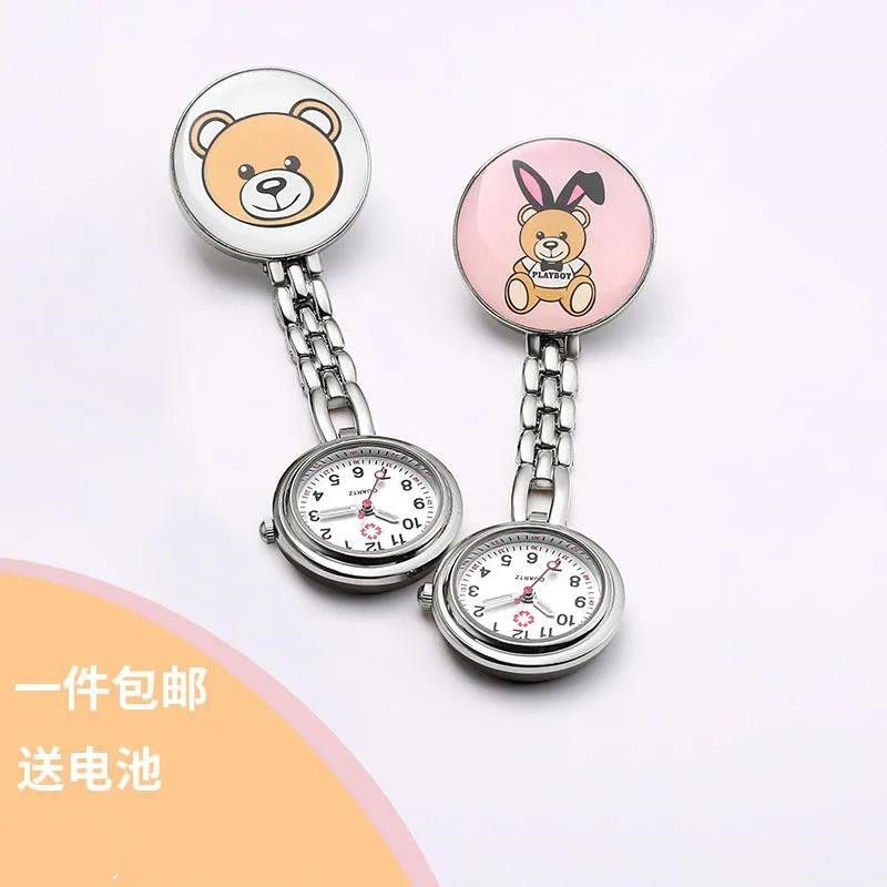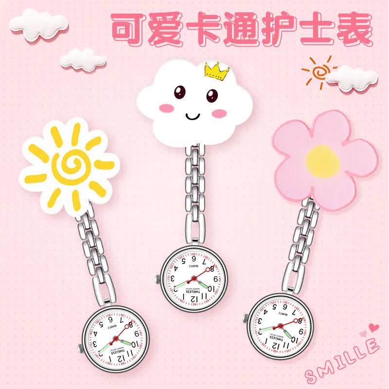 Мультяшные светящиеся милые водонепроницаемые карманные часы с зажимом для школьников, женский стиль, простой и элегантный дизайн
