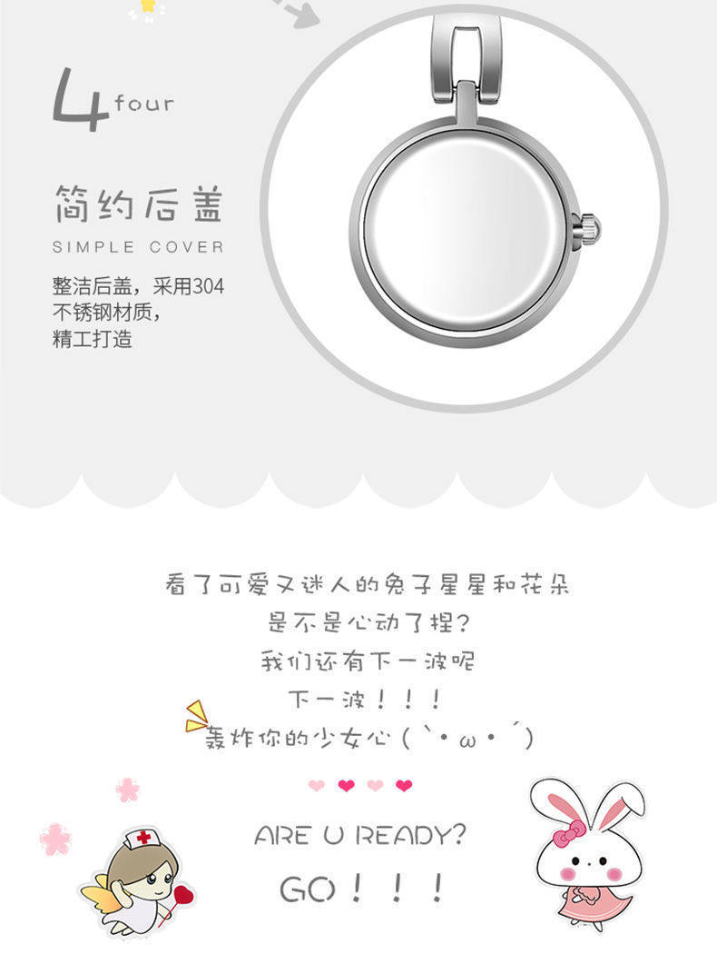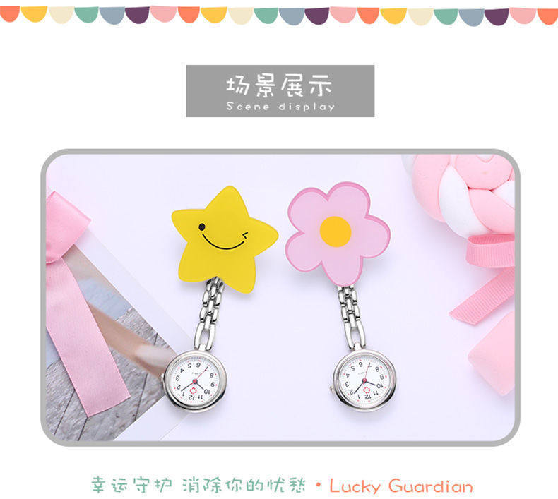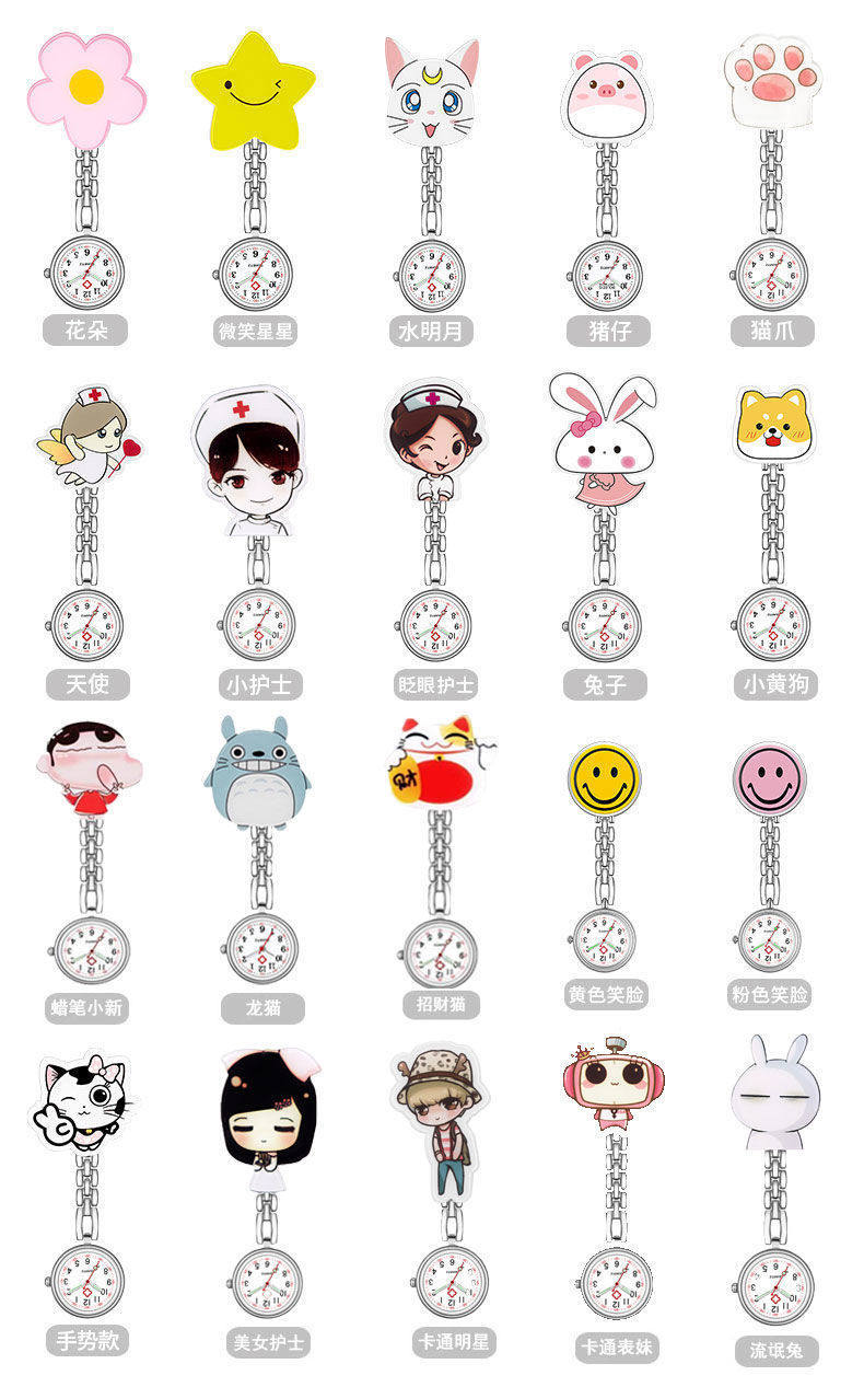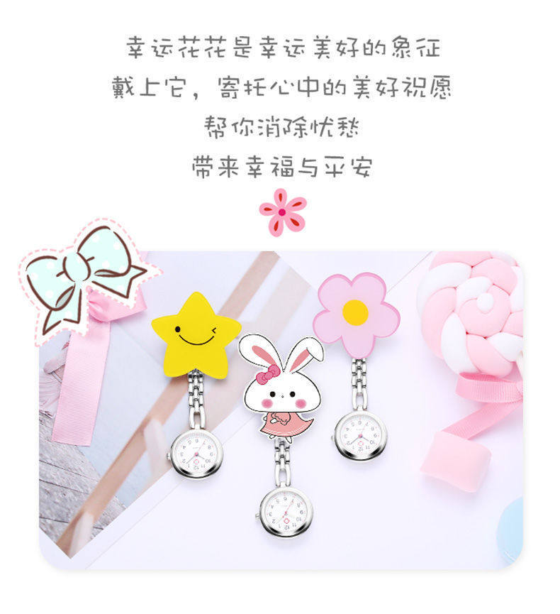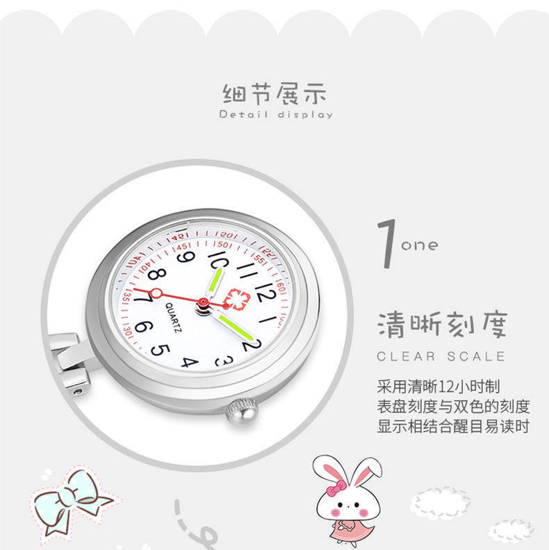 Мультяшные светящиеся милые водонепроницаемые карманные часы с зажимом для школьников, женский стиль, простой и элегантный дизайн