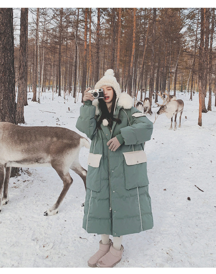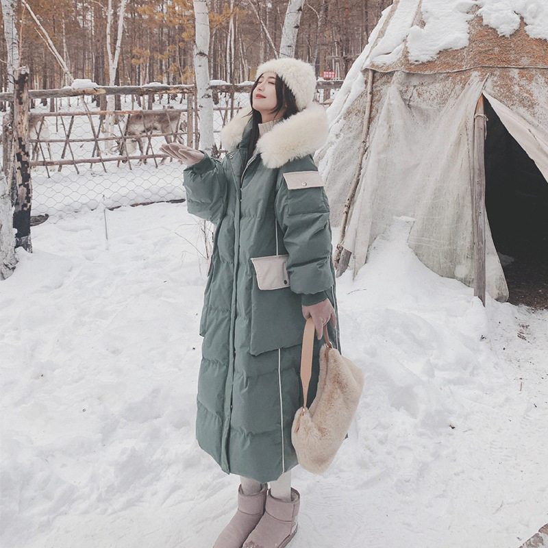 Удерживающее тепло снаряжение с пухом, длинный зимний пуховик, средней длины, увеличенная толщина