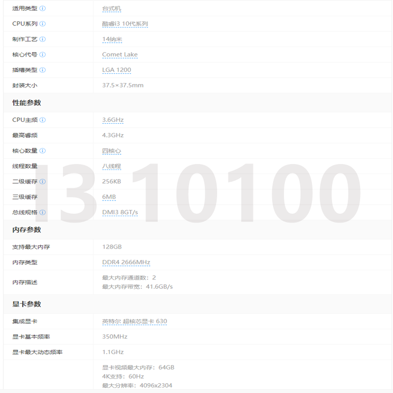 Свободный чип Intel I3 10100, подходящий для процессора процессора 10-го и 11-го поколения, четырехъядерный процессор с интерфейсом LGA 1151, тактовой частотой 3,0 ГГц.