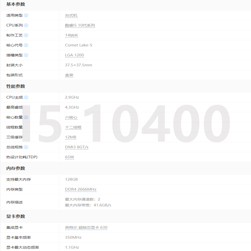 - I5 10400
