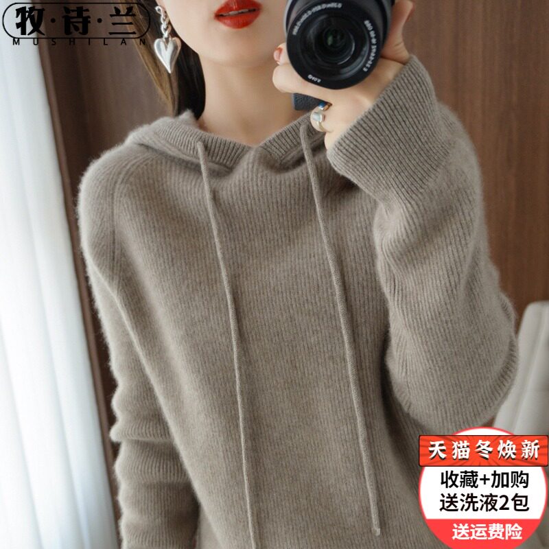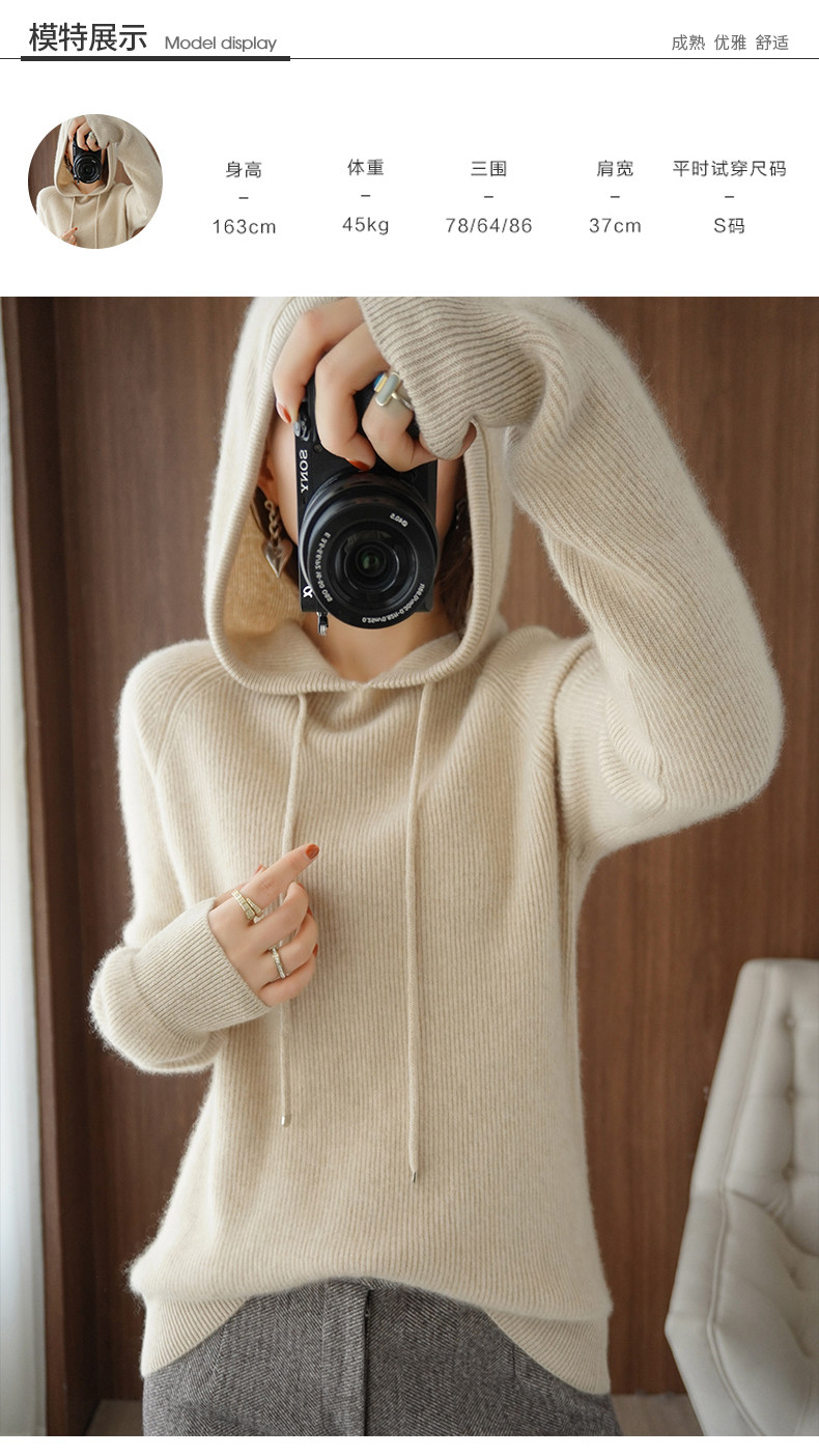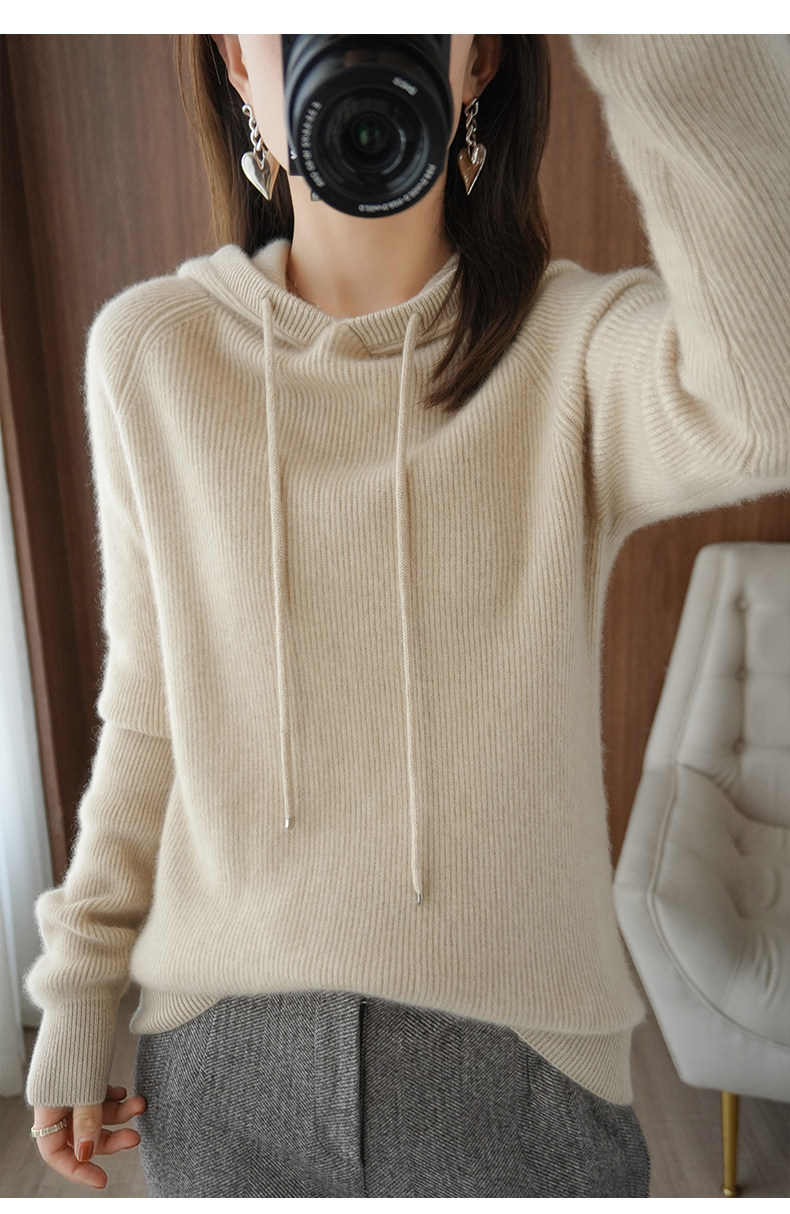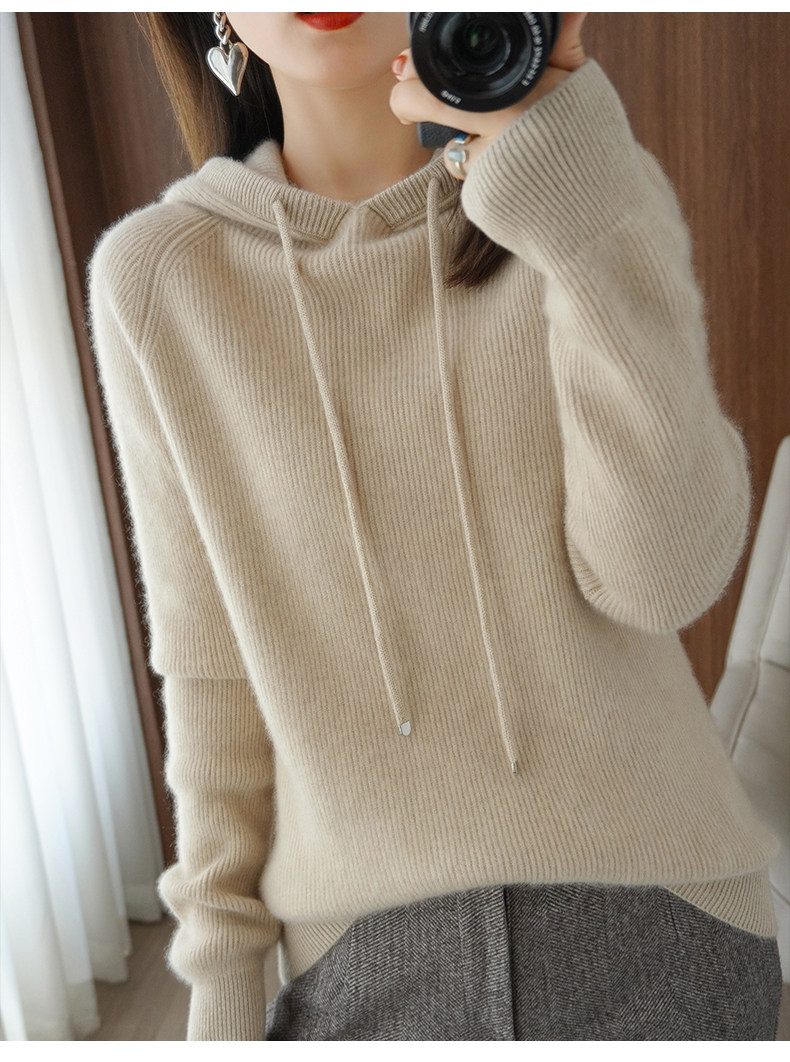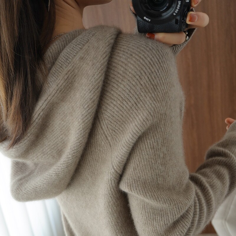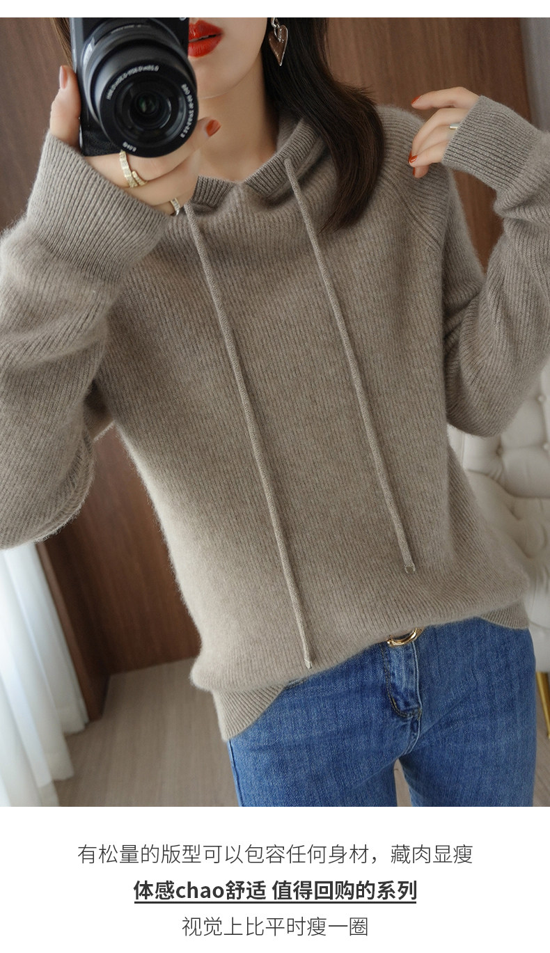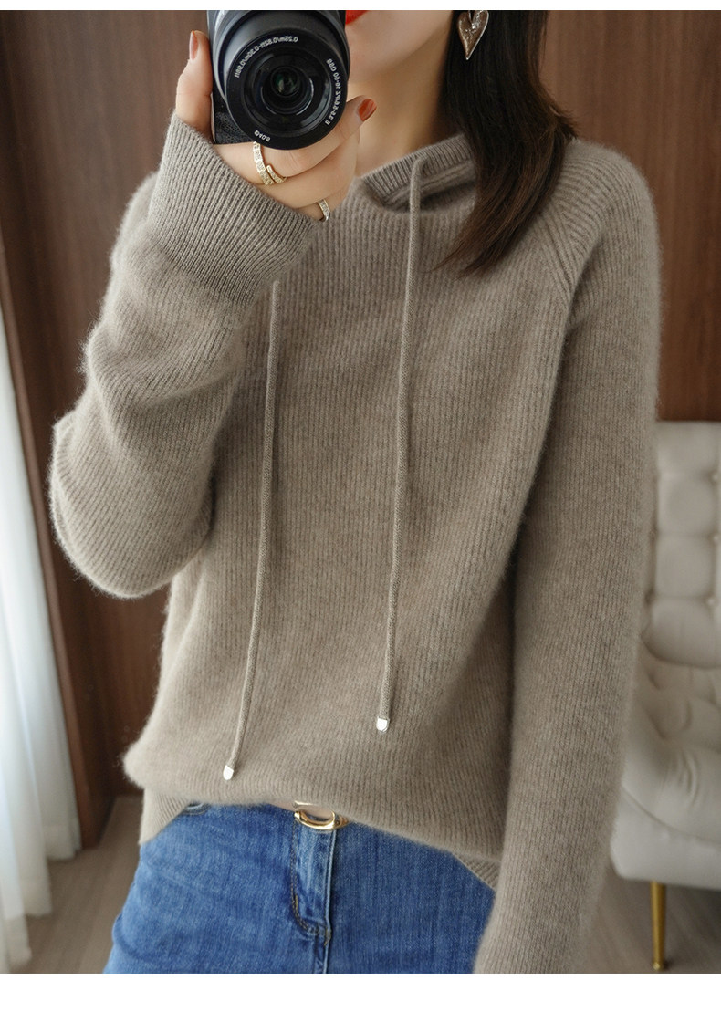 Толстовка с капюшоном для отдыха, шерстяной свитер, трикотажное демисезонное термобелье, удерживающий тепло кашемировый балахон