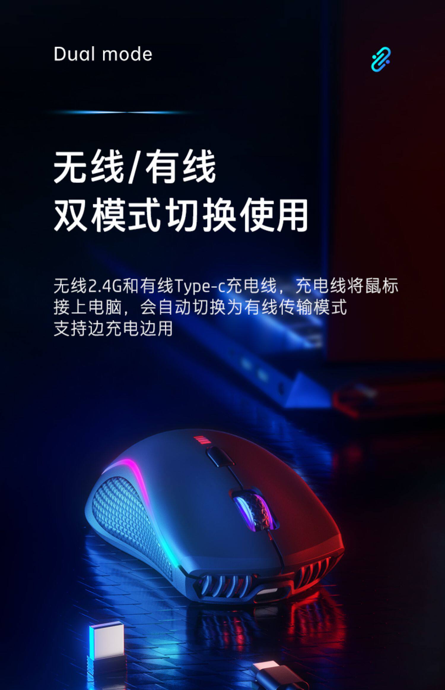[Беспроводная/проводная] e -Sports RGB Двойная мышь