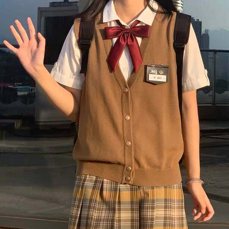 Студенческая юбка в складку, свитер, жилет, японская школьная юбка для школьников и студентов, трикотажный кардиган